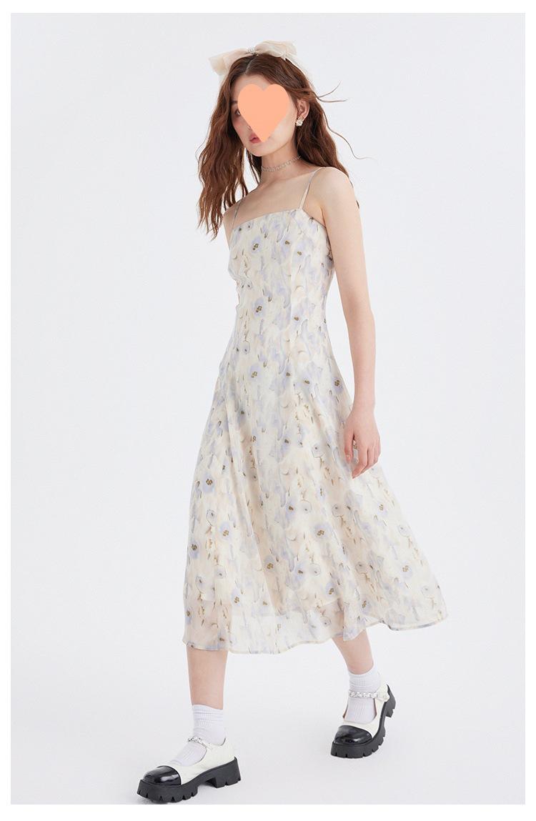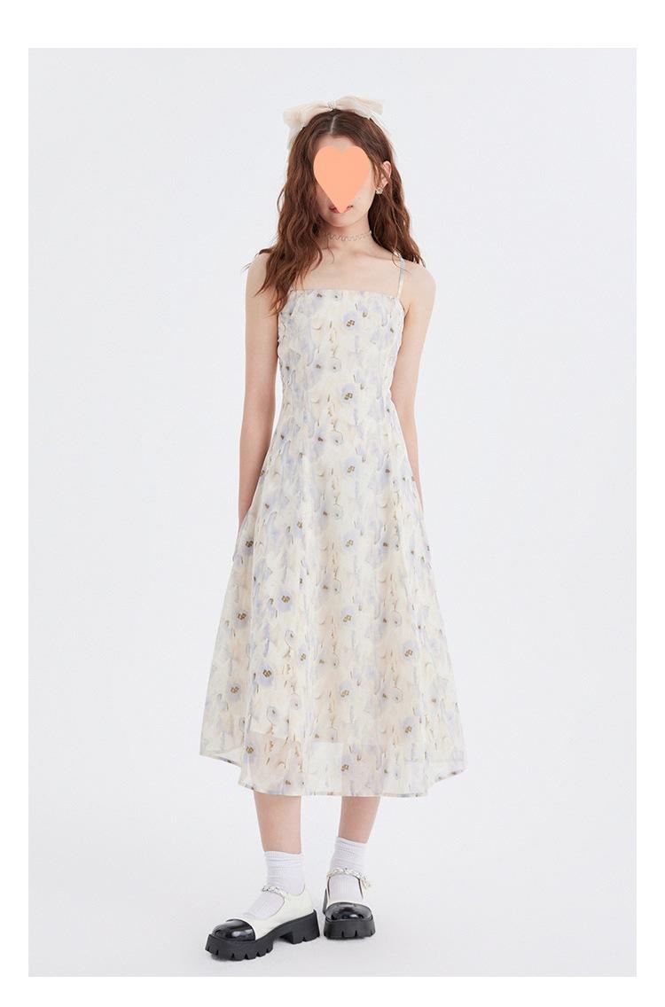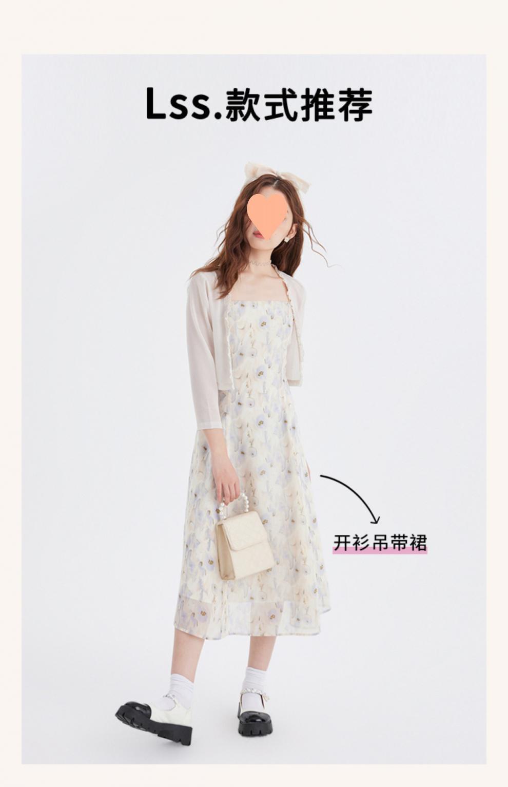 Conjunto de dos piezas de cárdigan y falda lencero para mujer, vestido floral sencillo francés de verano, vestido largo suave, traje de moda que combina con todo.