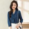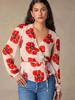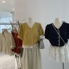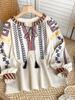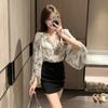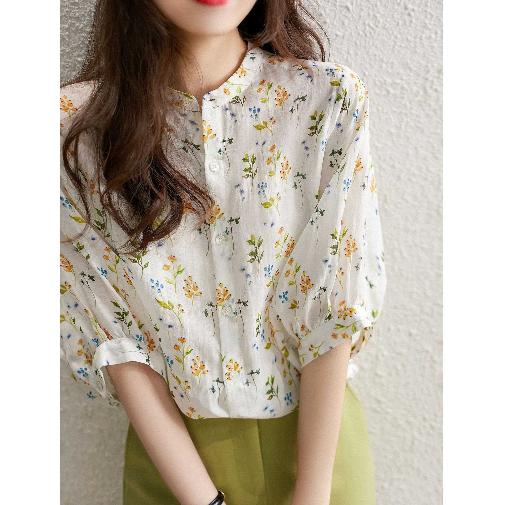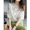 Comercio exterior 2023 Verano nuevo belleza de oxígeno elegante reductor de edad estampado manga abullonada blusa top de ramio