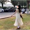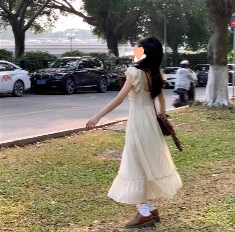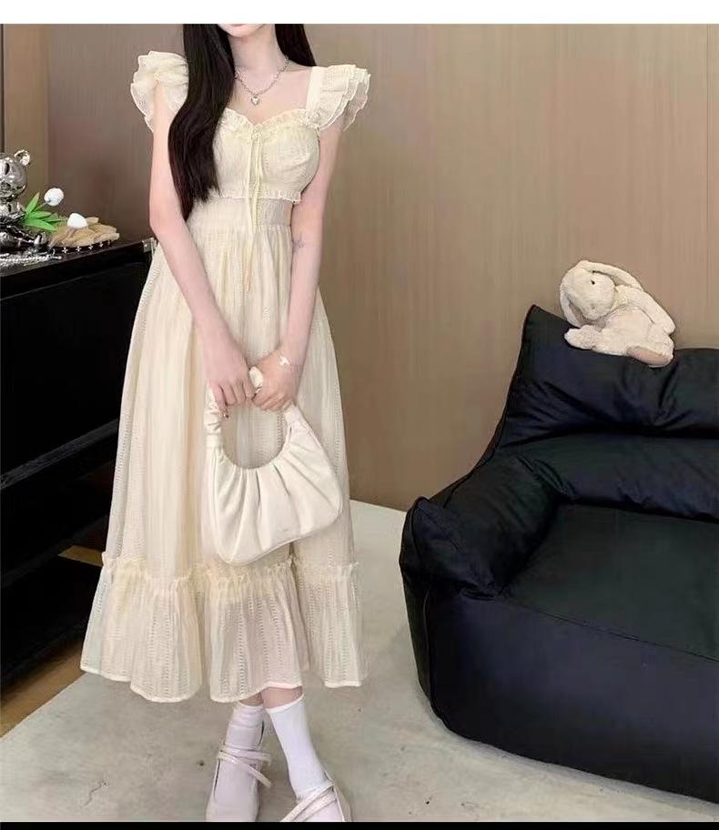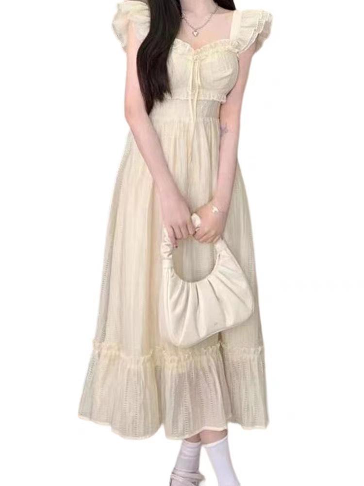 Vestido Blanco Pequeño de Manga Volante para Mujer Verano 2025 Nuevo Estilo Cintura Adelgazante Look Francés Elegante Primer Amor Hada Vestido Largo