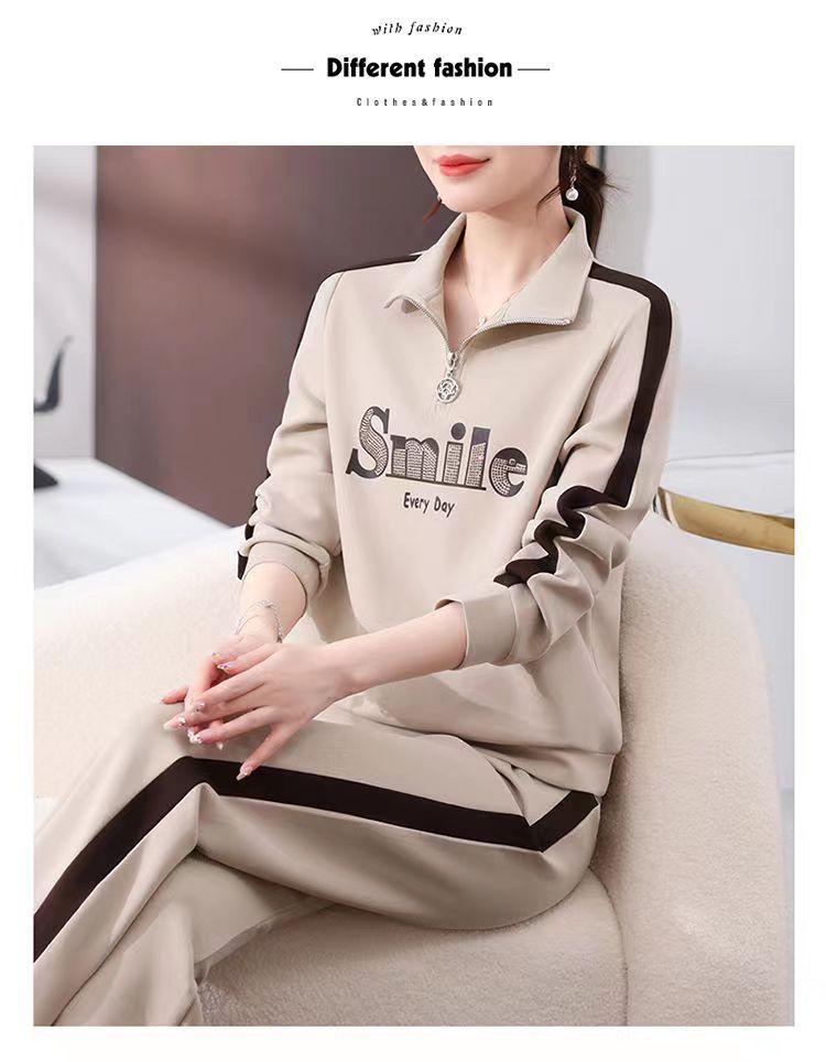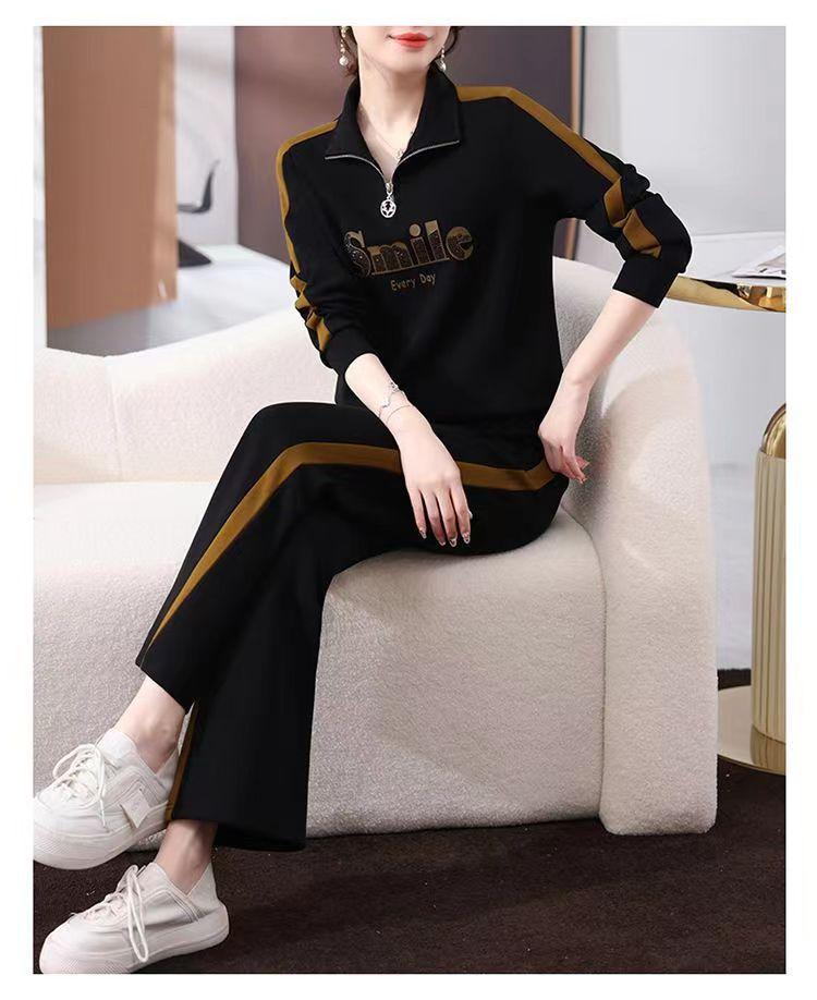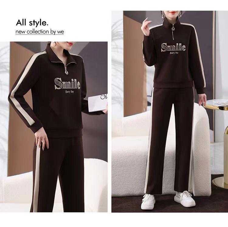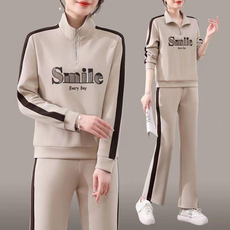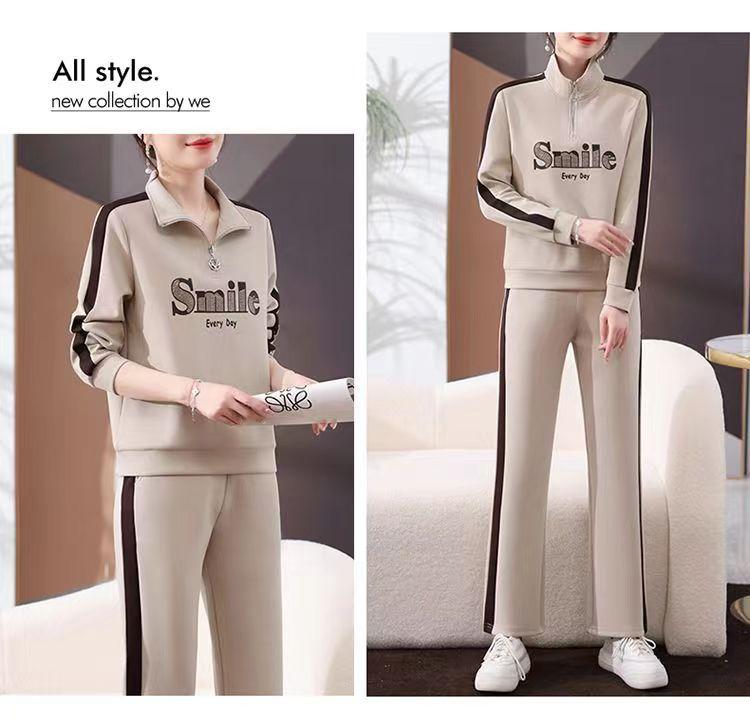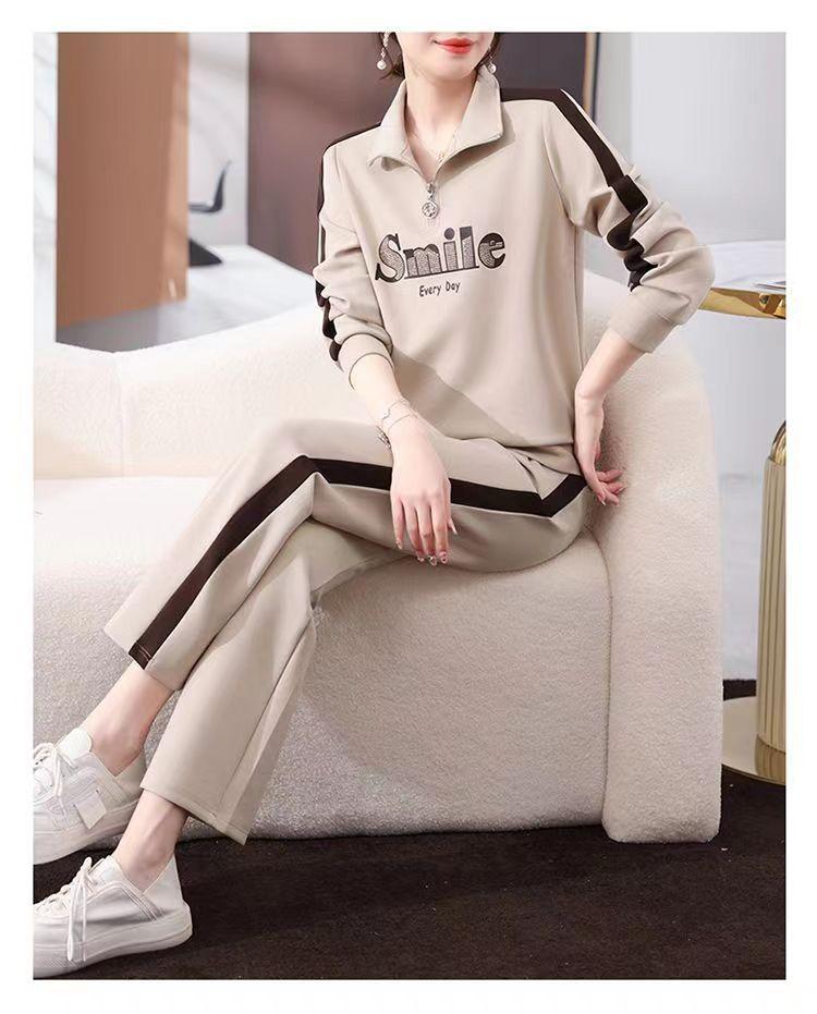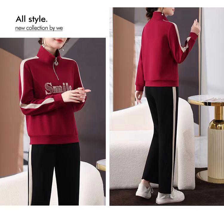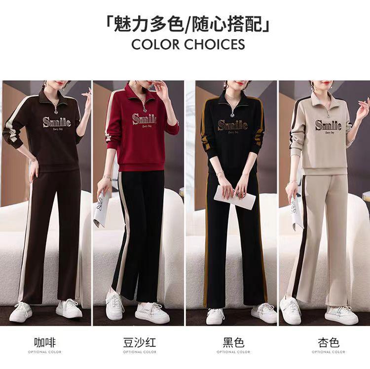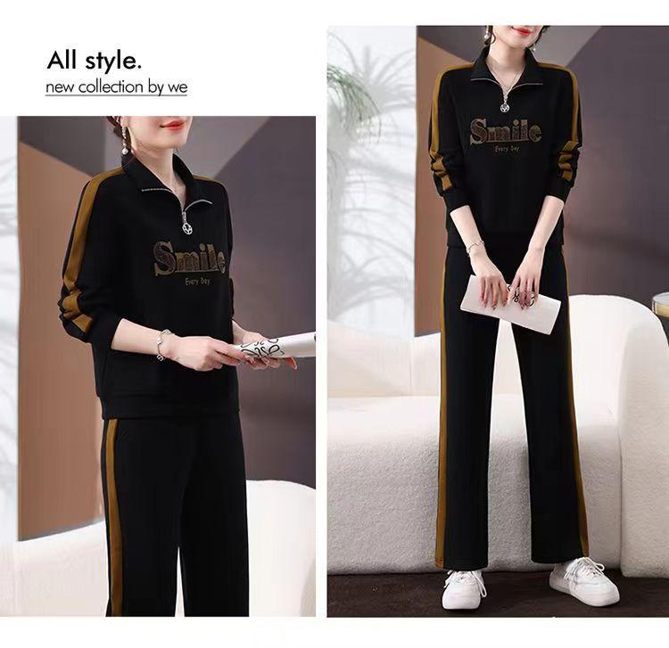 Traje deportivo de moda para mujer, primavera y otoño, nuevo americano, Lel, manga larga, para madre, ropa informal para correr, conjunto de dos piezas