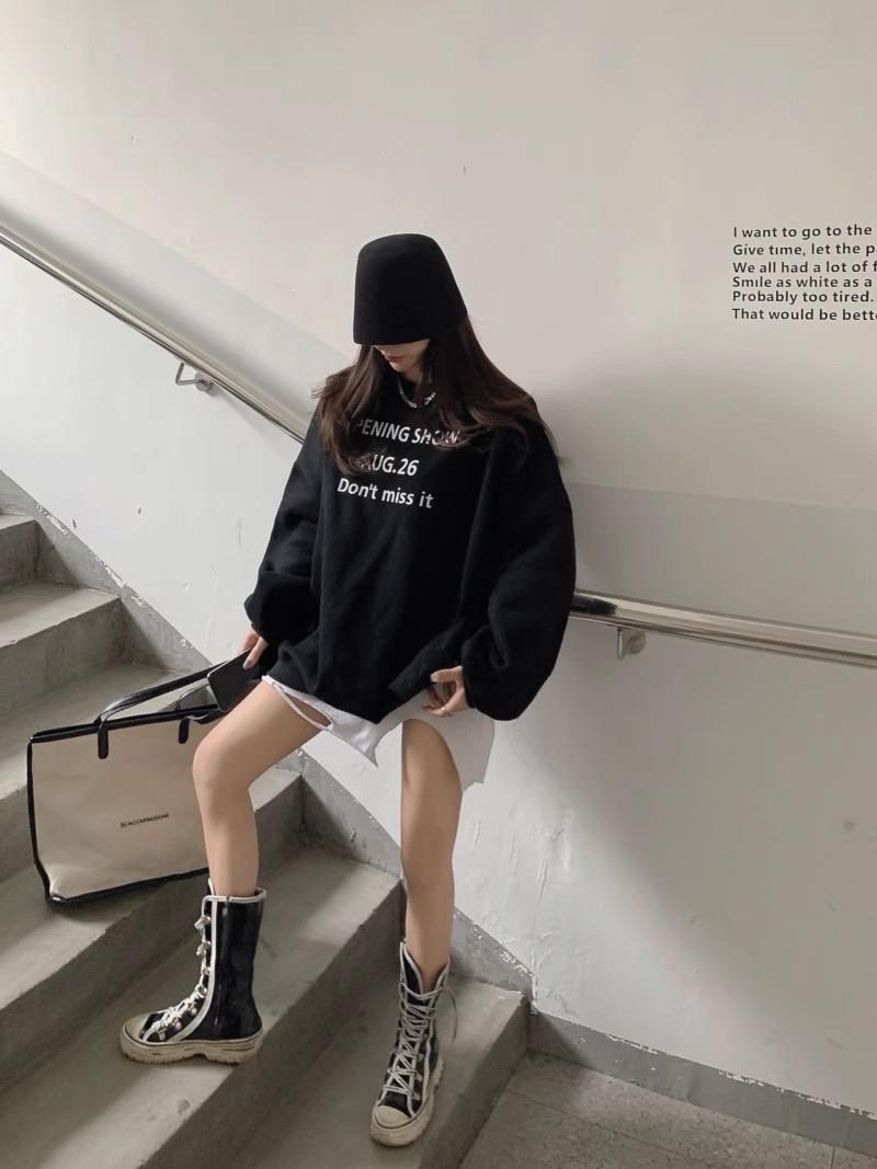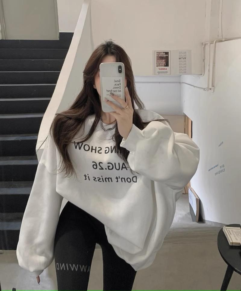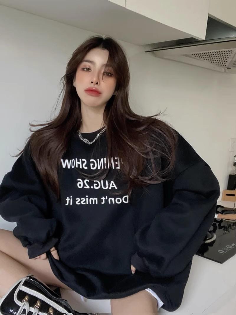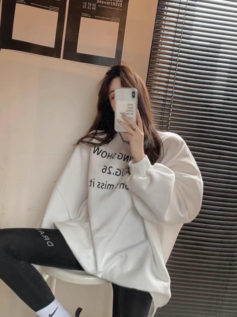 Sudadera oversize estilo americano High Street para mujer Otoño e Invierno con forro polar Chic Estilo Hong Kong Holgada Tops Interiores Trendy