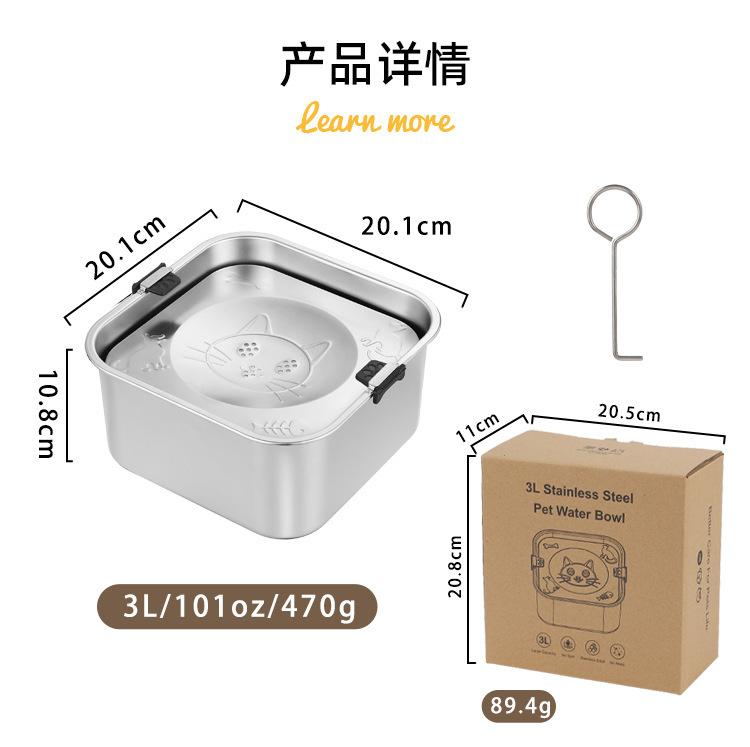 Acero inoxidable 304 tazón para perro tazón de suspensión tazón cuadrado flotante tazón para perro gran capacidad agua potable anti-golpes tazón para mascota agua potable