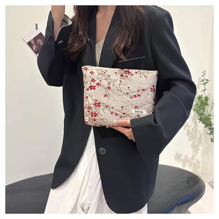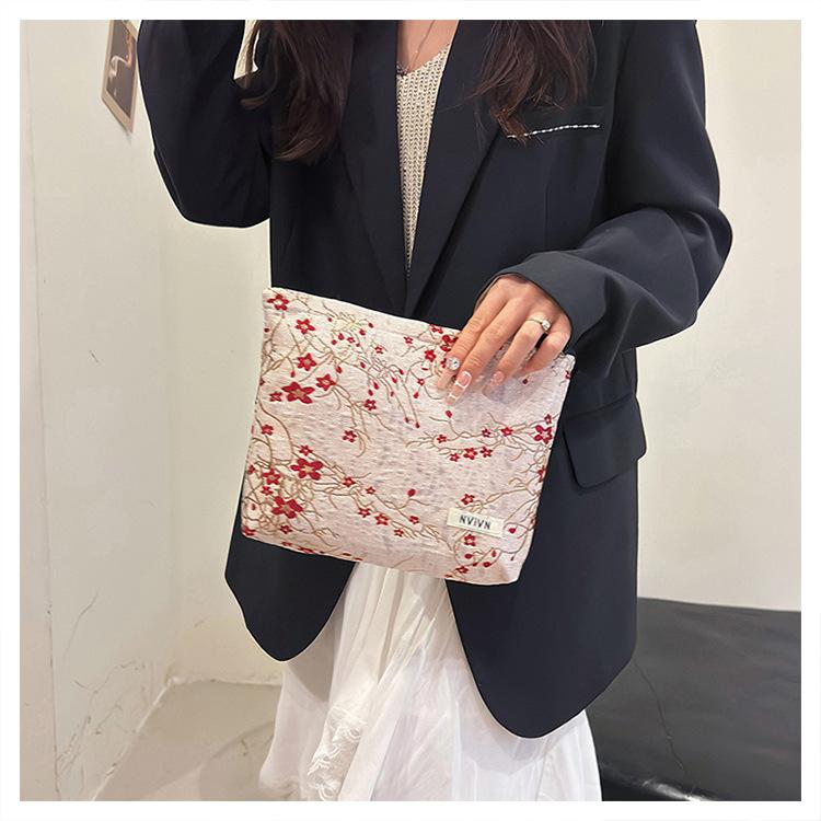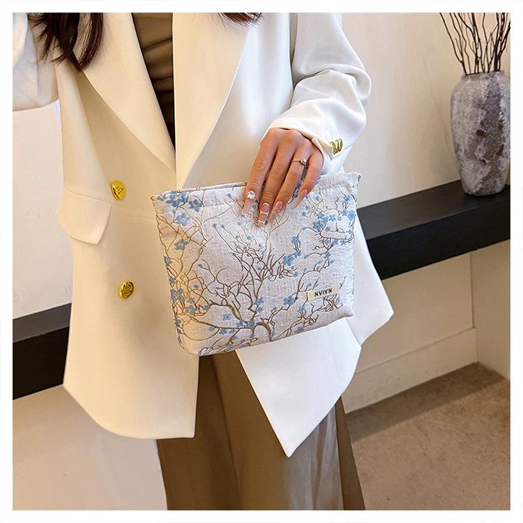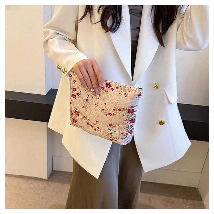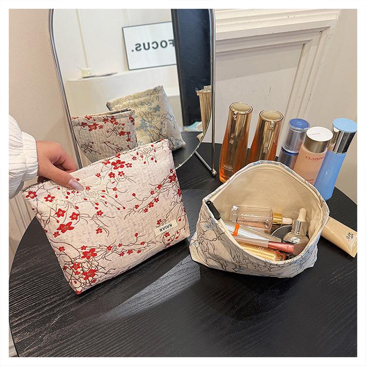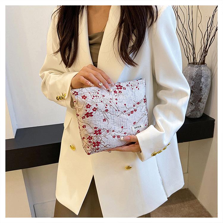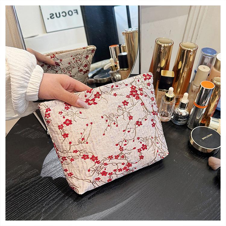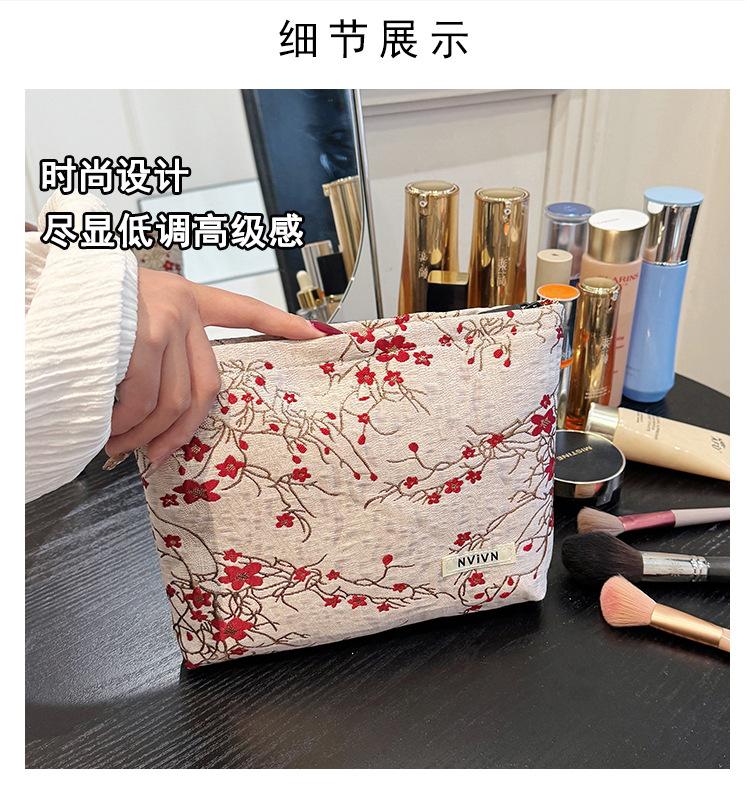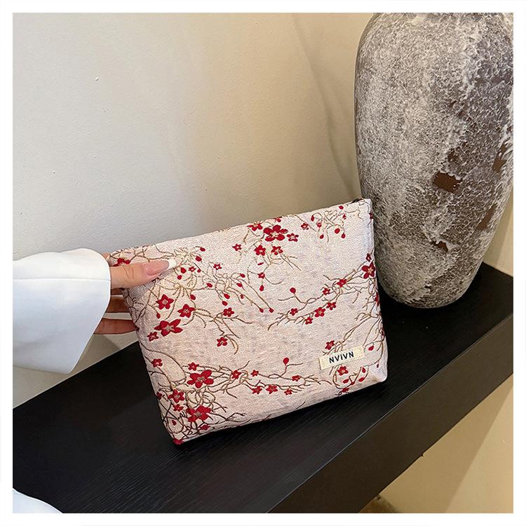 Bolsa de cosméticos bordada en relieve con flor de ciruelo
