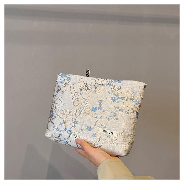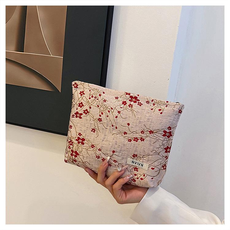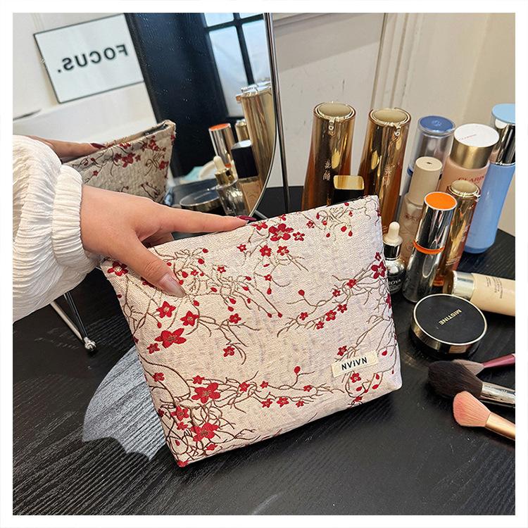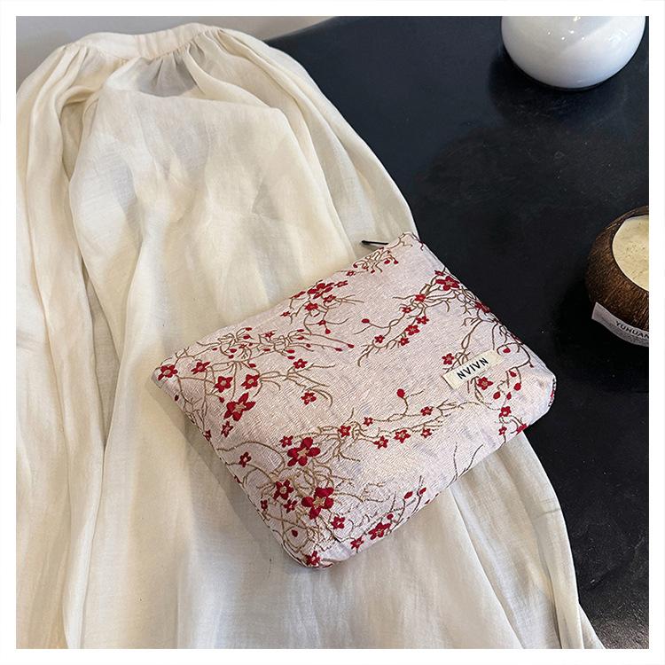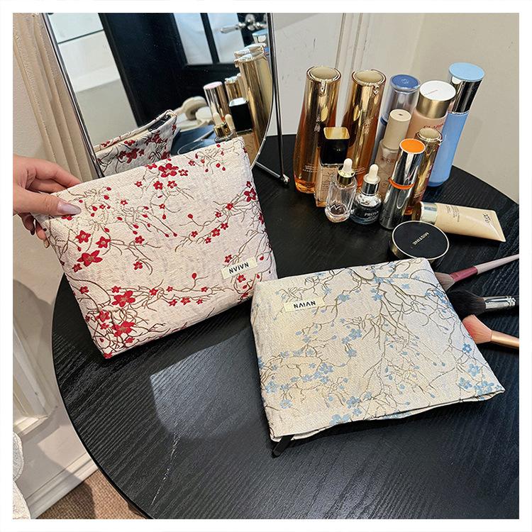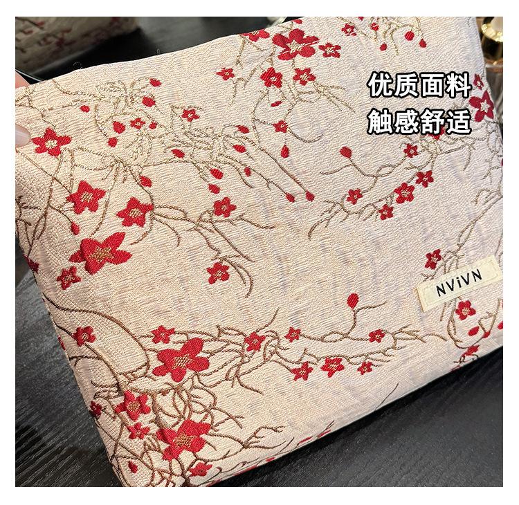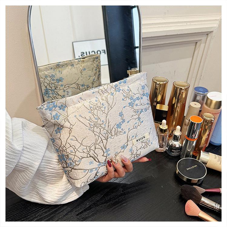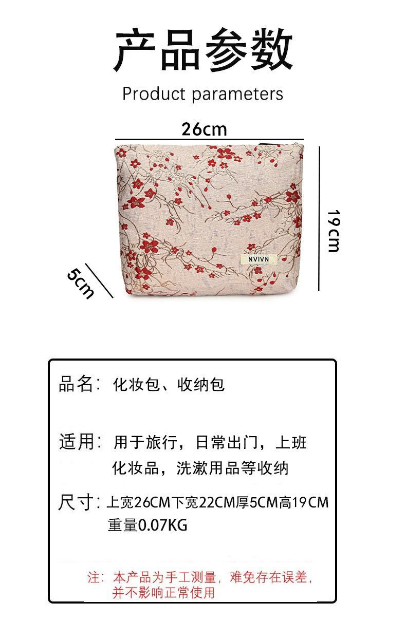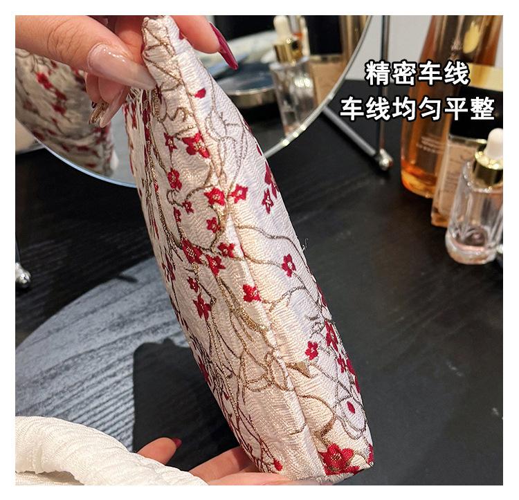 Esta bolsa de cosméticos con patrón de flor de ciruelo bordado en relieve es la combinación perfecta de arte y practicidad. Su tela es suave pero resistente.Tacto cómodoEl patrón de flor de ciruelo bordado en la superficie es realista, y cadaseno de ciruelaTodas parecen florecer orgullosamente en el viento frío, con contornos de pétalos claros y líneas suaves y delicadas, mostrando un alto nivel de artesanía. La cremallera de la cosmetiquera es suave y fácil de jalar, fácil de abrir y cerrar, y puede proteger eficazmente tus cosméticos. El espacio interno está dispuesto razonablemente y puede acomodar más cosméticos y objetos pequeños.Ya sea para uso diario o para viajar, esta bolsa de cosméticos mostrará tu gusto elegante., conviértete en tu compañero íntimo en tu hermoso viaje