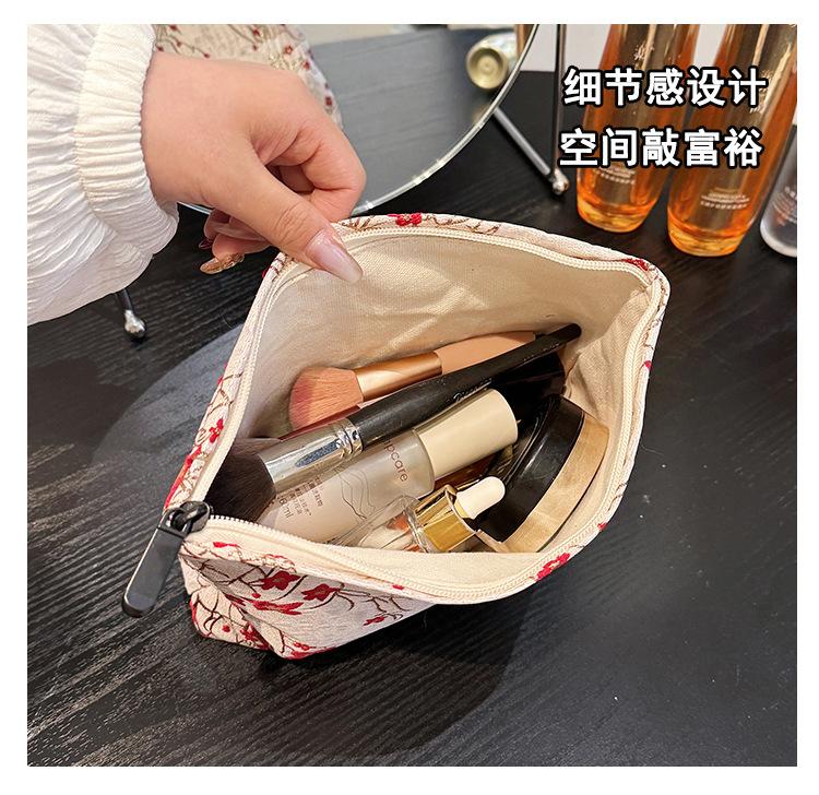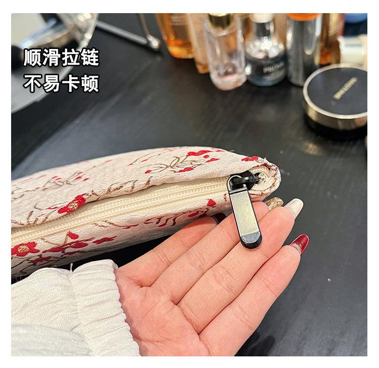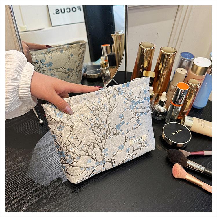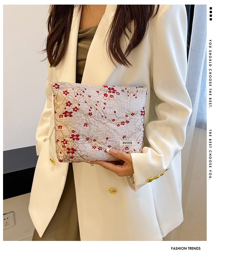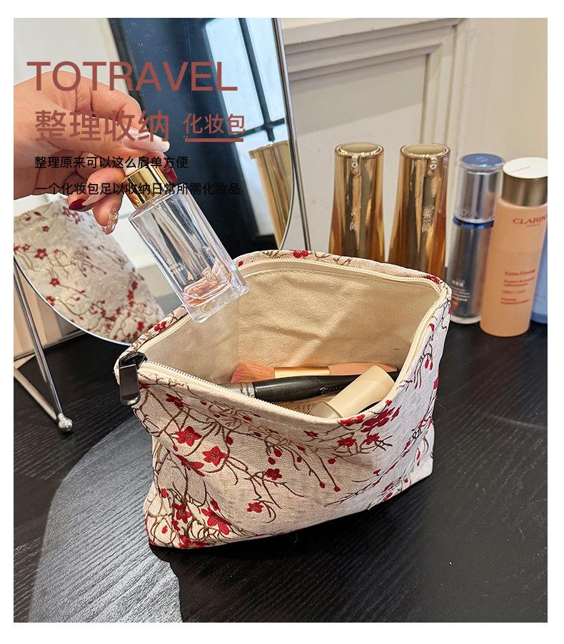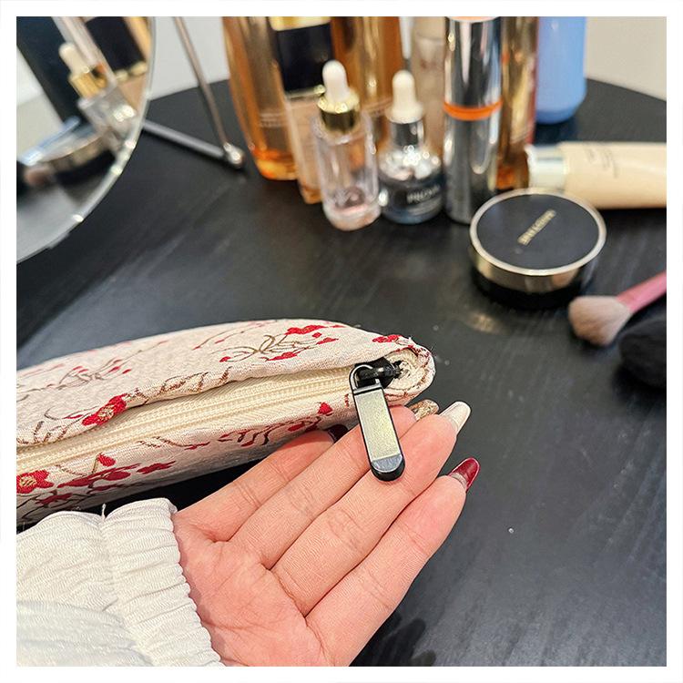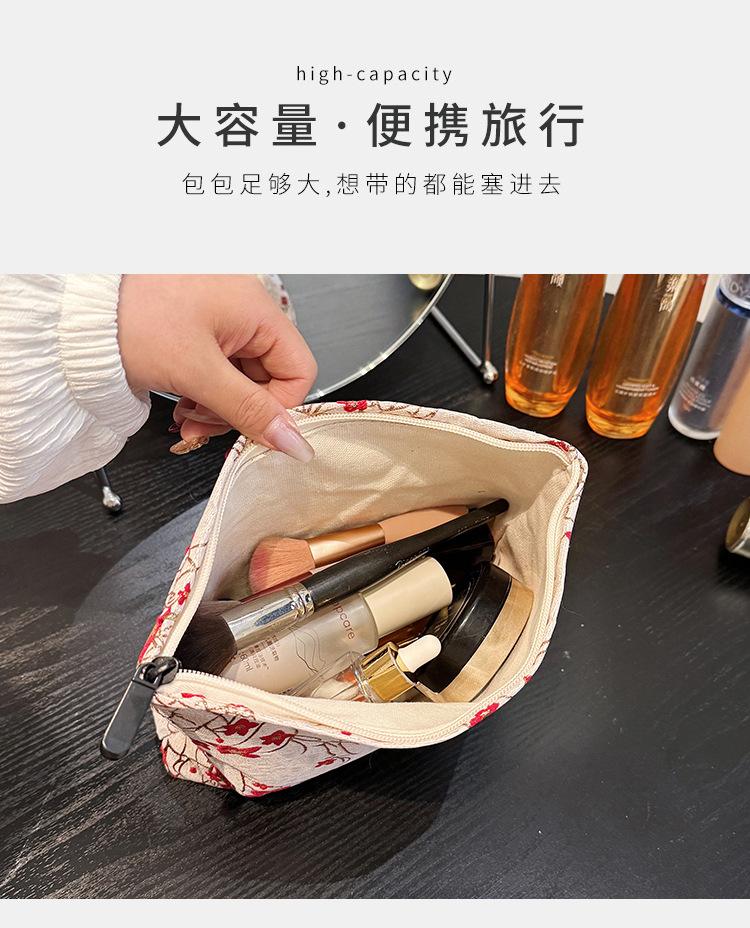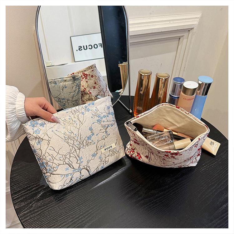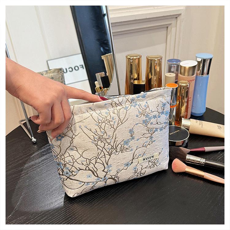 Esta bolsa de cosméticos con patrón de flor de ciruelo bordado en relieve es la combinación perfecta de arte y practicidad. Su tela es suave pero resistente.Tacto cómodoEl patrón de flor de ciruelo bordado en la superficie es realista, y cadaseno de ciruelaTodas parecen florecer orgullosamente en el viento frío, con contornos de pétalos claros y líneas suaves y delicadas, mostrando un alto nivel de artesanía. La cremallera de la cosmetiquera es suave y fácil de jalar, fácil de abrir y cerrar, y puede proteger eficazmente tus cosméticos. El espacio interno está dispuesto razonablemente y puede acomodar más cosméticos y objetos pequeños.Ya sea para uso diario o para viajar, esta bolsa de cosméticos mostrará tu gusto elegante., conviértete en tu compañero íntimo en tu hermoso viaje