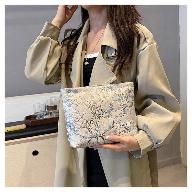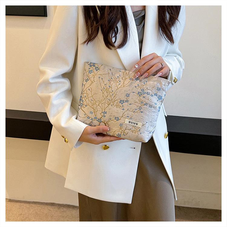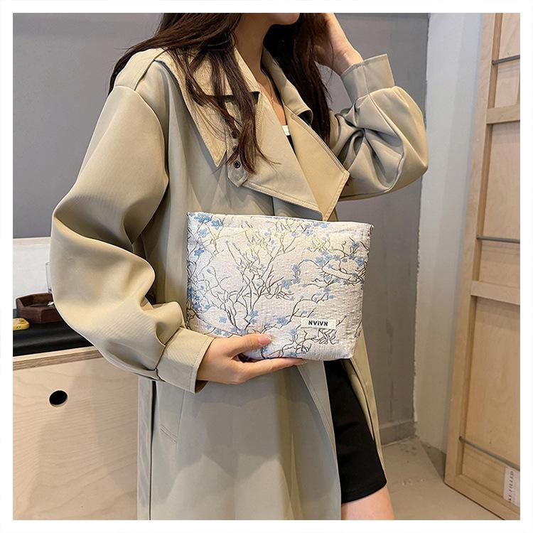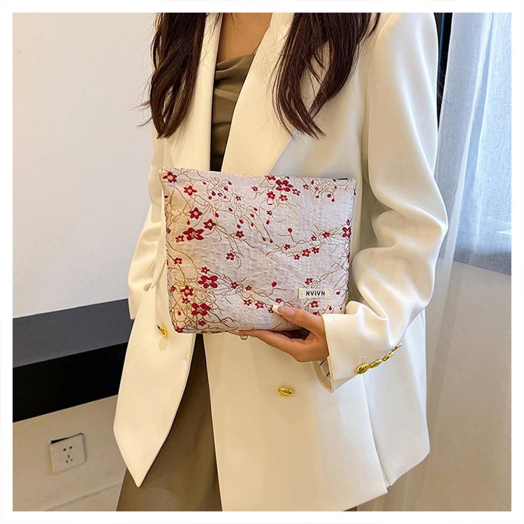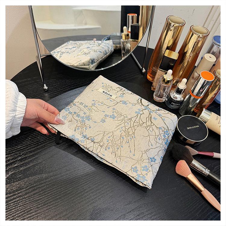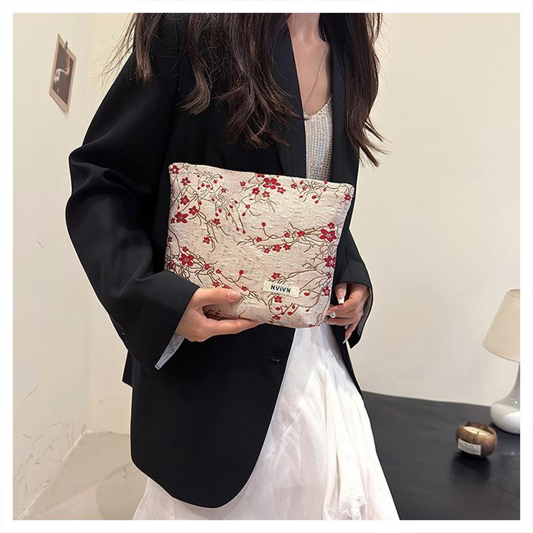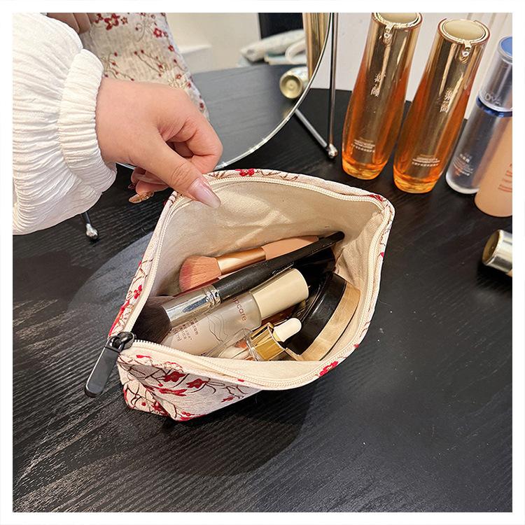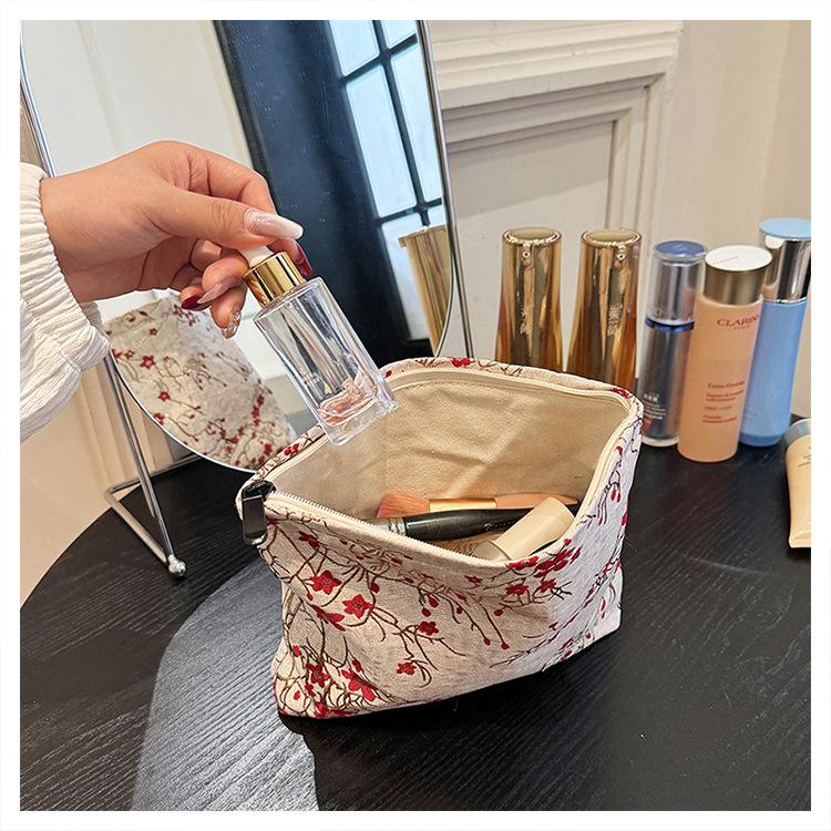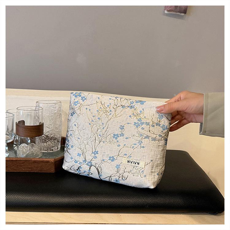 Esta bolsa de cosméticos con patrón de flor de ciruelo bordado en relieve es la combinación perfecta de arte y practicidad. Su tela es suave pero resistente.Tacto cómodoEl patrón de flor de ciruelo bordado en la superficie es realista, y cadaseno de ciruelaTodas parecen florecer orgullosamente en el viento frío, con contornos de pétalos claros y líneas suaves y delicadas, mostrando un alto nivel de artesanía. La cremallera de la cosmetiquera es suave y fácil de jalar, fácil de abrir y cerrar, y puede proteger eficazmente tus cosméticos. El espacio interno está dispuesto razonablemente y puede acomodar más cosméticos y objetos pequeños.Ya sea para uso diario o para viajar, esta bolsa de cosméticos mostrará tu gusto elegante., conviértete en tu compañero íntimo en tu hermoso viaje