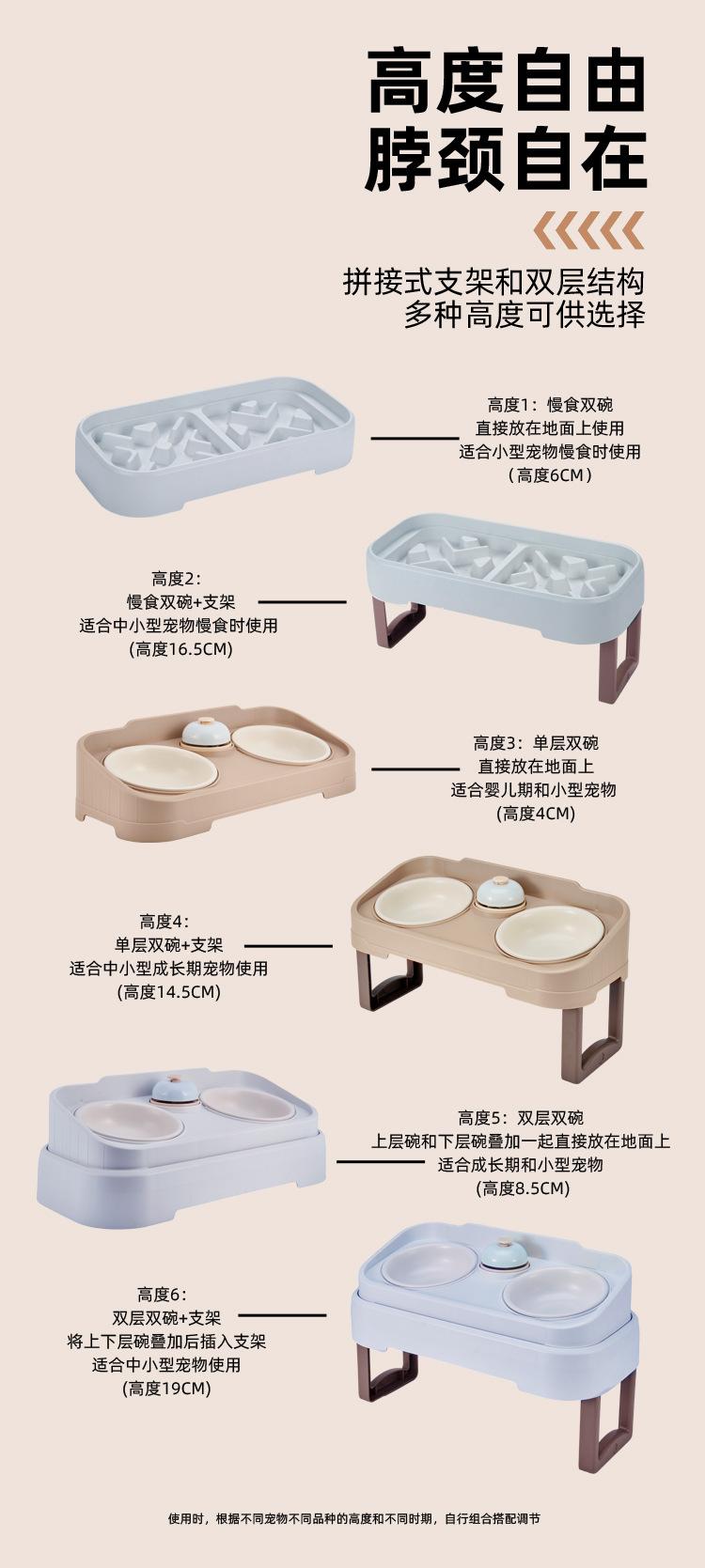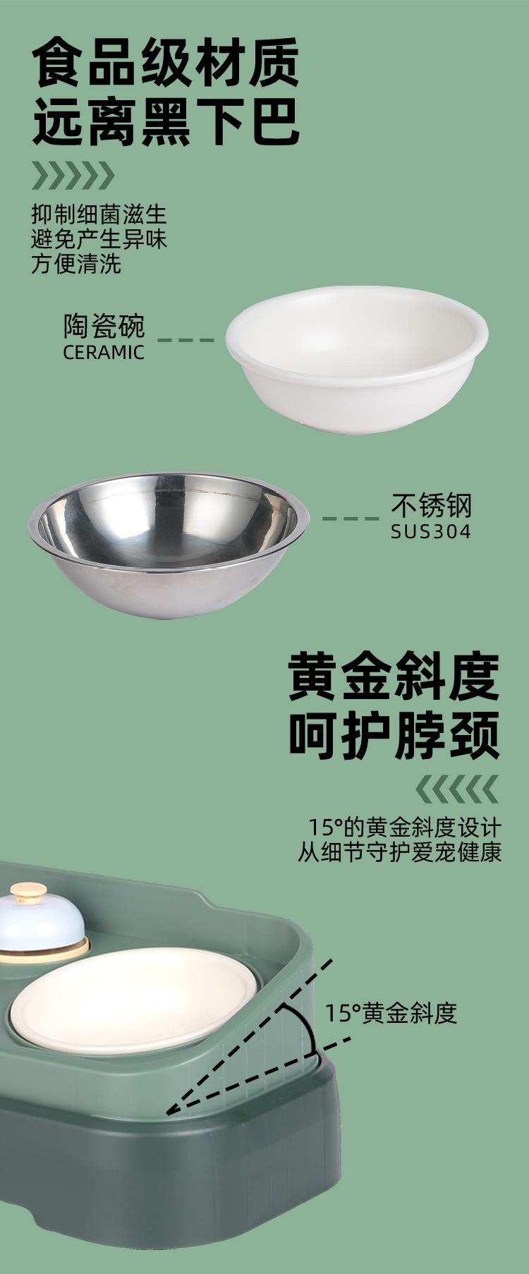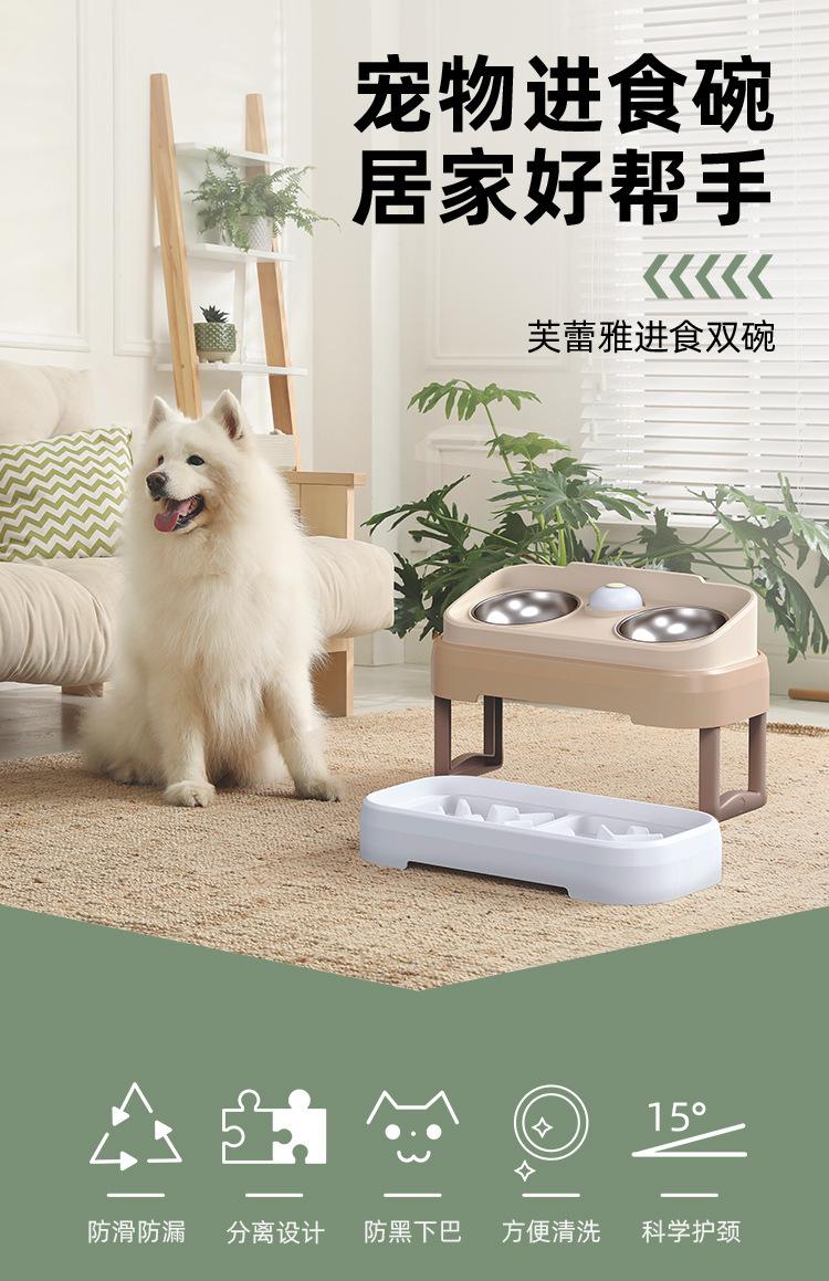 Suministros para Mascotas Cuidadosamente Seleccionados Circulación de Piernas Altas Integrada Tazón para Alimentar Gatos y Perros, Tazón de Cerámica de Acero Inoxidable de Una Pieza, Tazón Doble para Comida de Perro