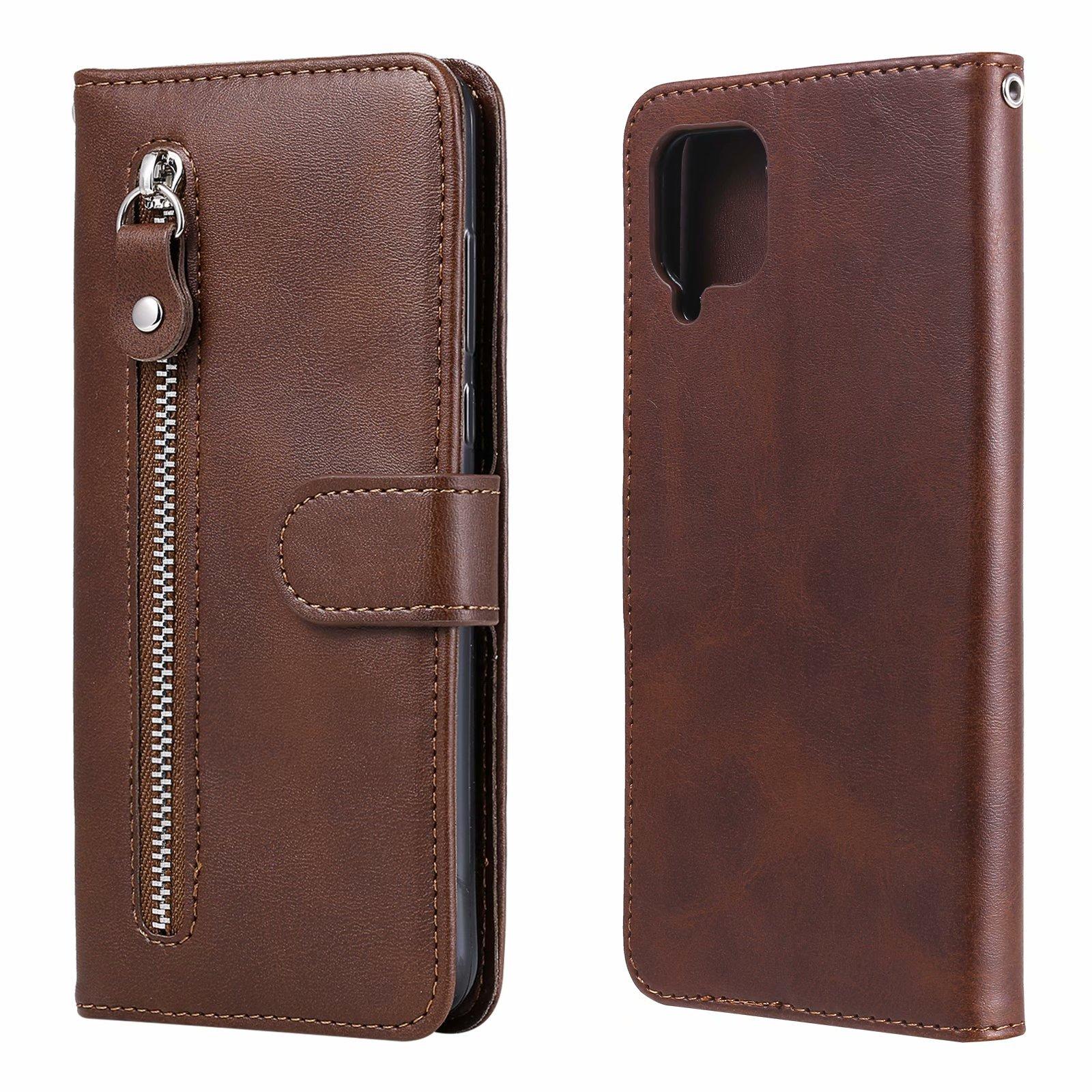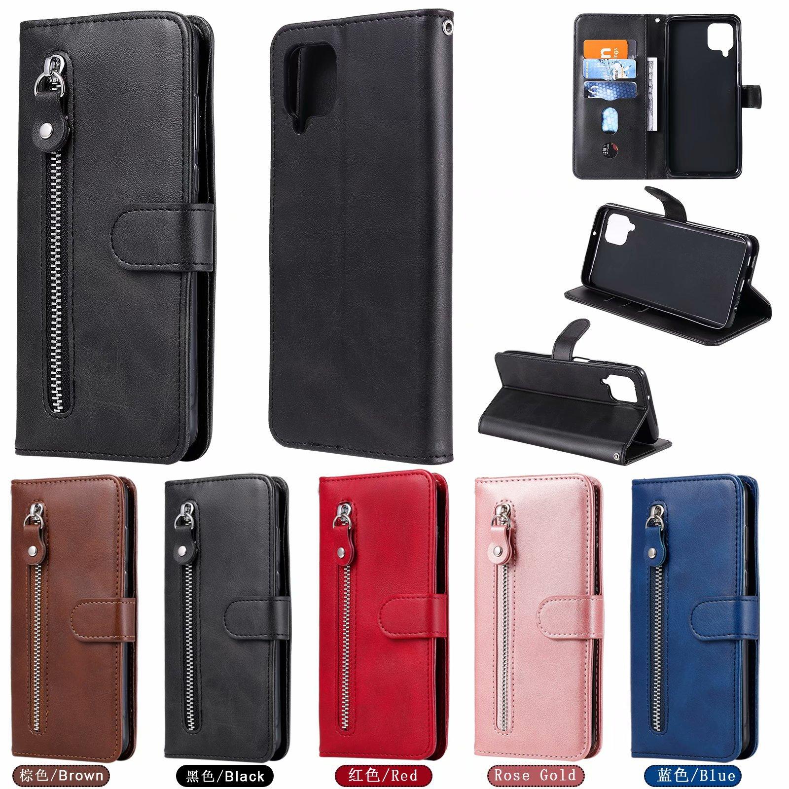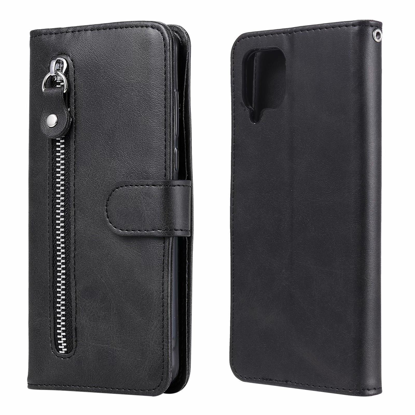 Adecuado para Samsung S21, funda de cuero para teléfono móvil A02S, funda de cuero con cremallera y patrón de becerro de color sólido, funda de cuero para billetera A72, tarjetero