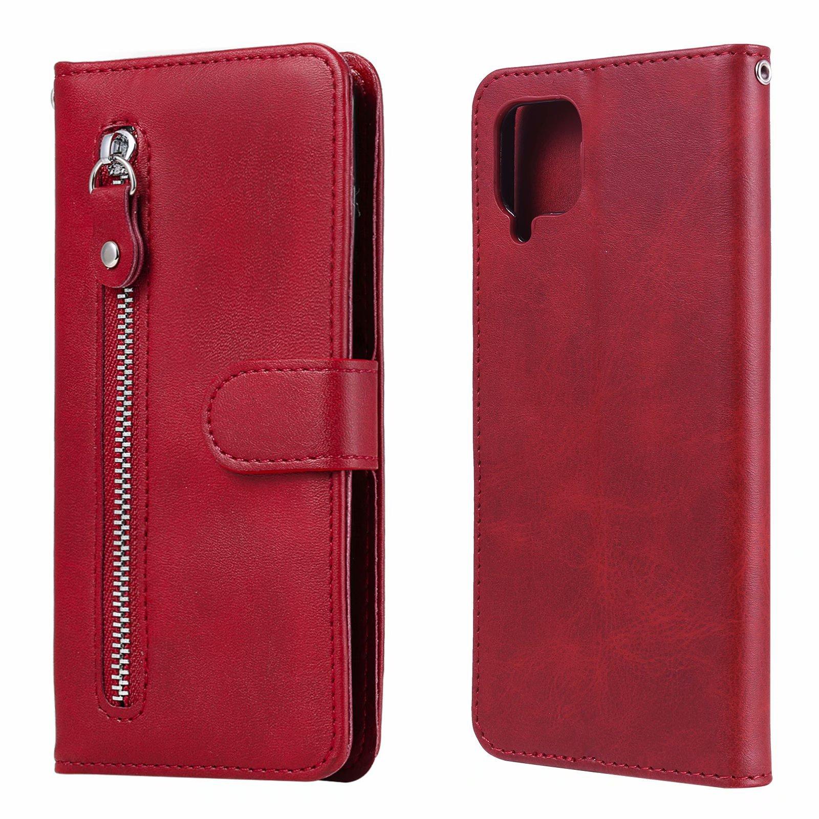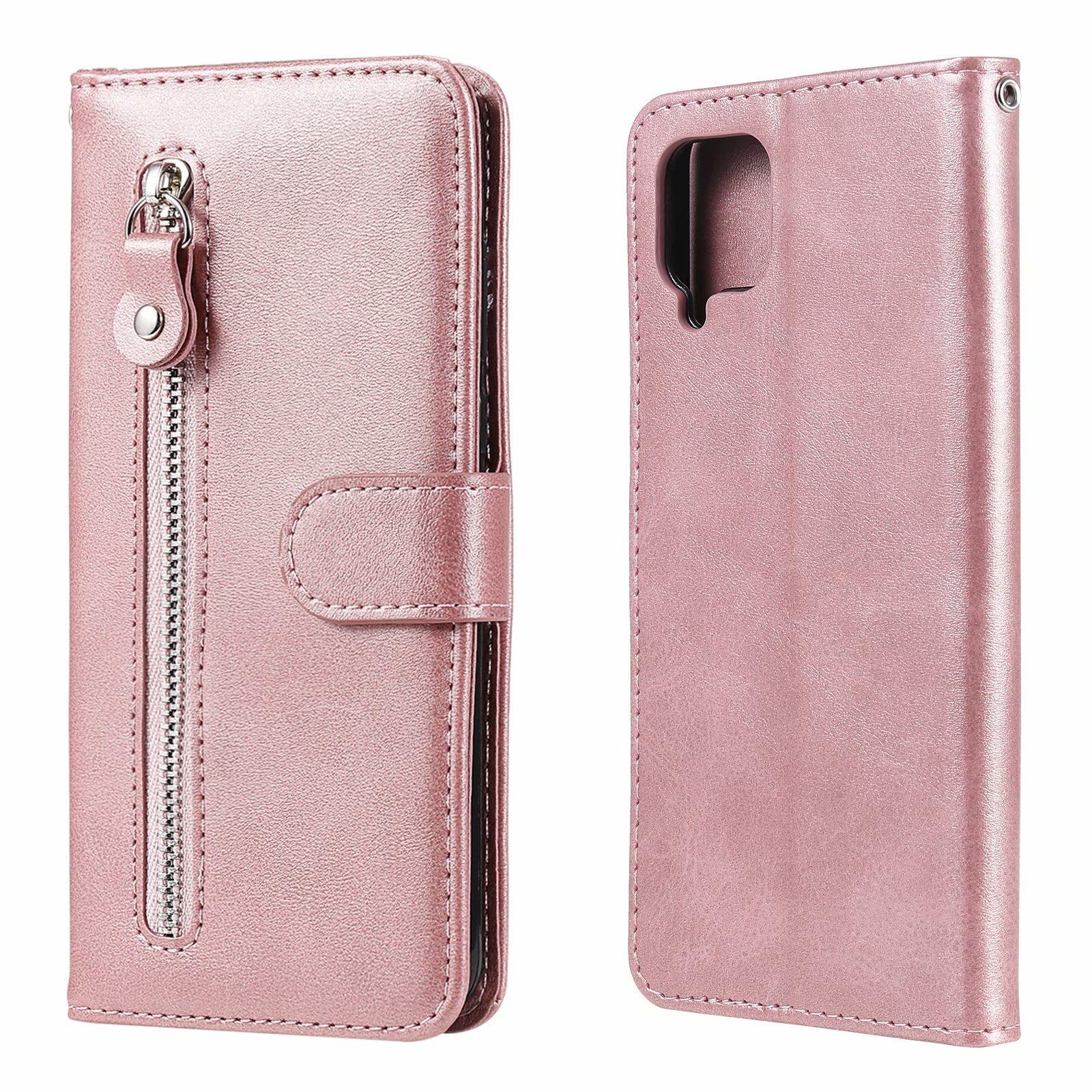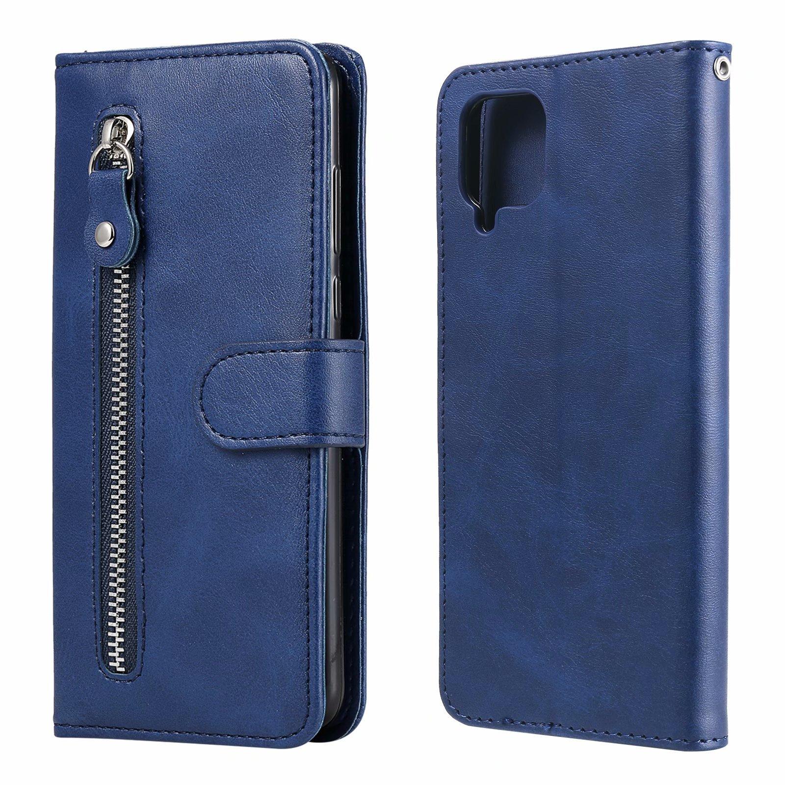 Adecuado para Samsung S21, funda de cuero para teléfono móvil A02S, funda de cuero con cremallera y patrón de becerro de color sólido, funda de cuero para billetera A72, tarjetero