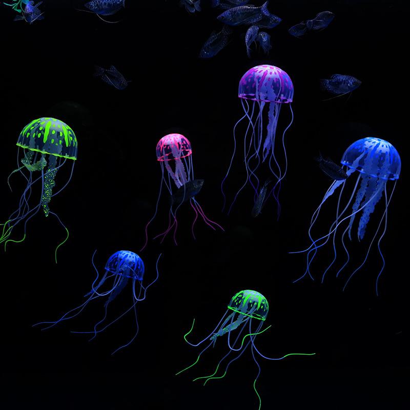 Simulación medusa fluorescente adornos para acuario pequeño y mediano silicona flotante rojo neto decoración paisajística para acuario fabricantes