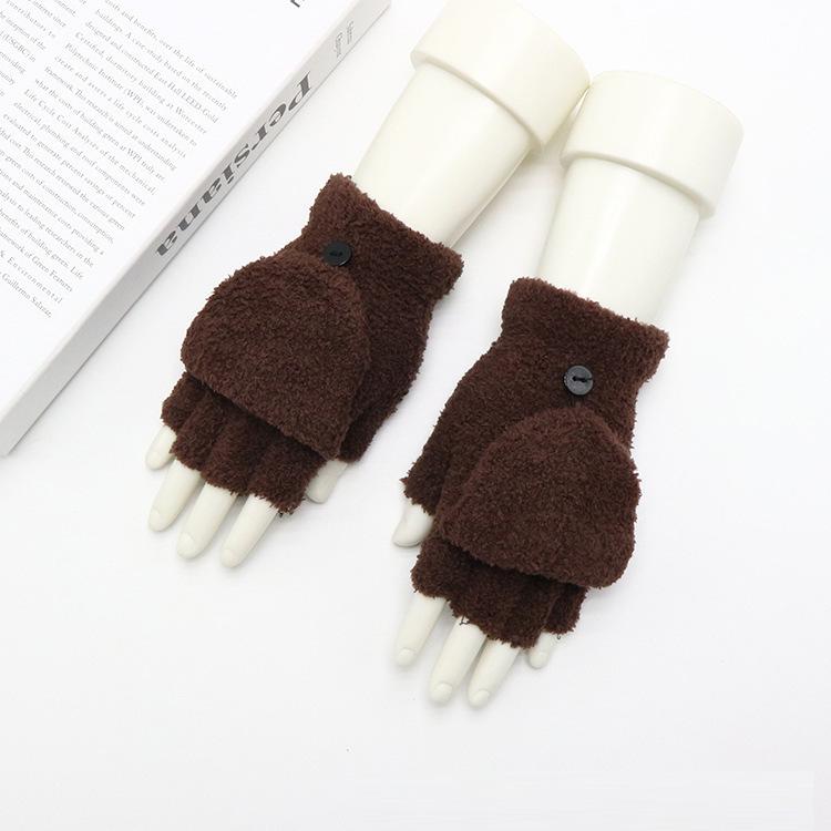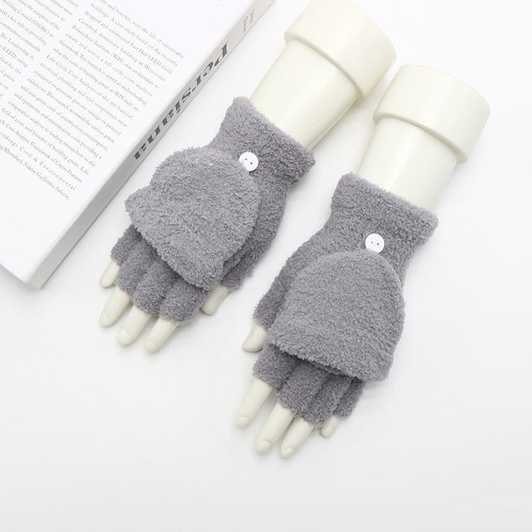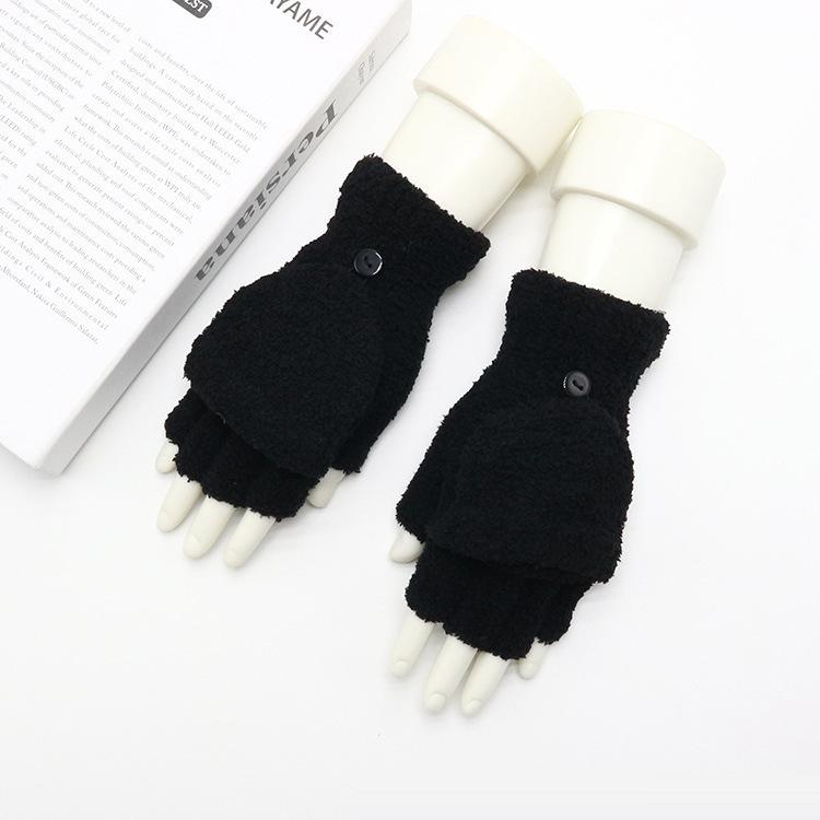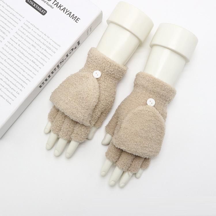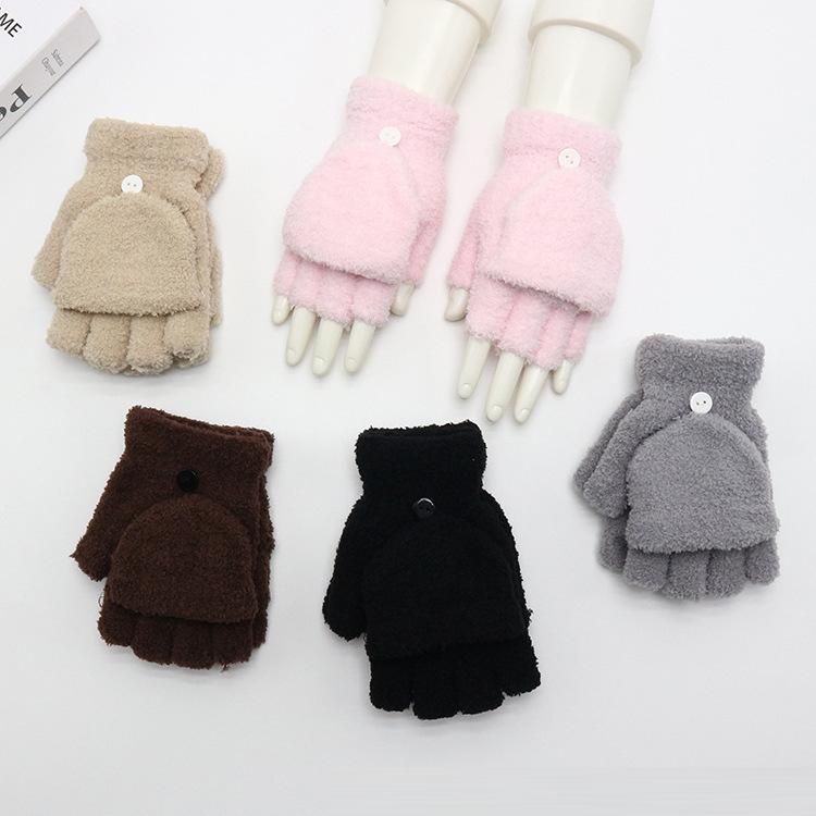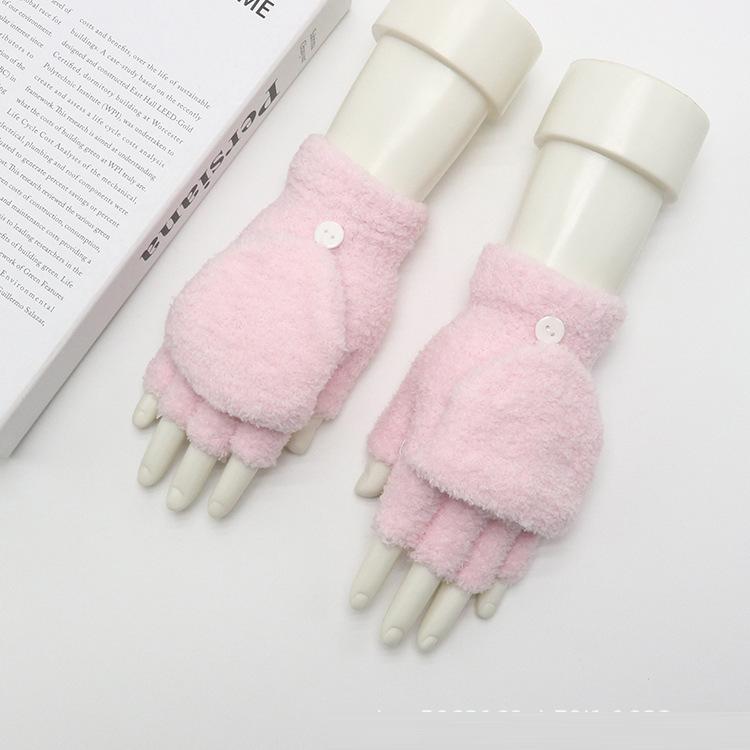 Guantes de invierno de color liso para mujer, cálidos, bonitos, resistentes al frío, con forro polar para exteriores, de estilo coreano, de felpa, tejidos para primavera y otoño.