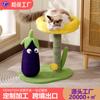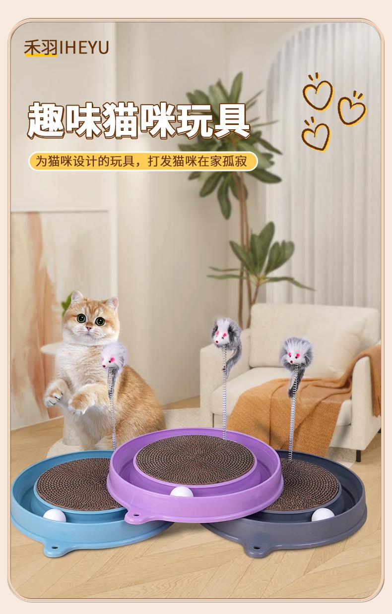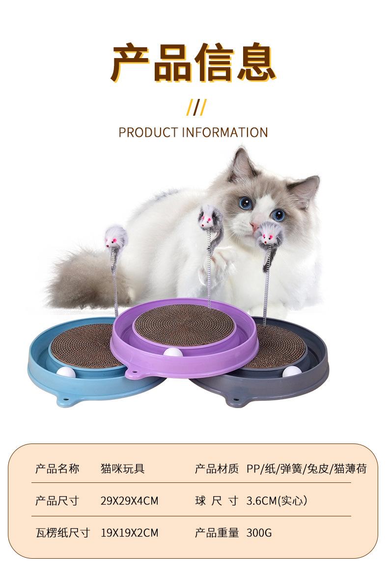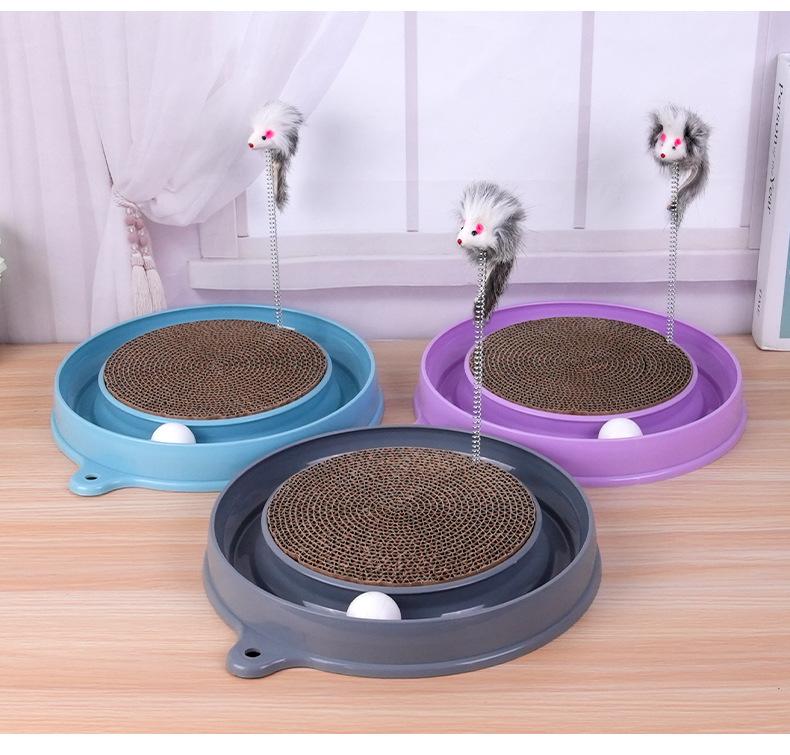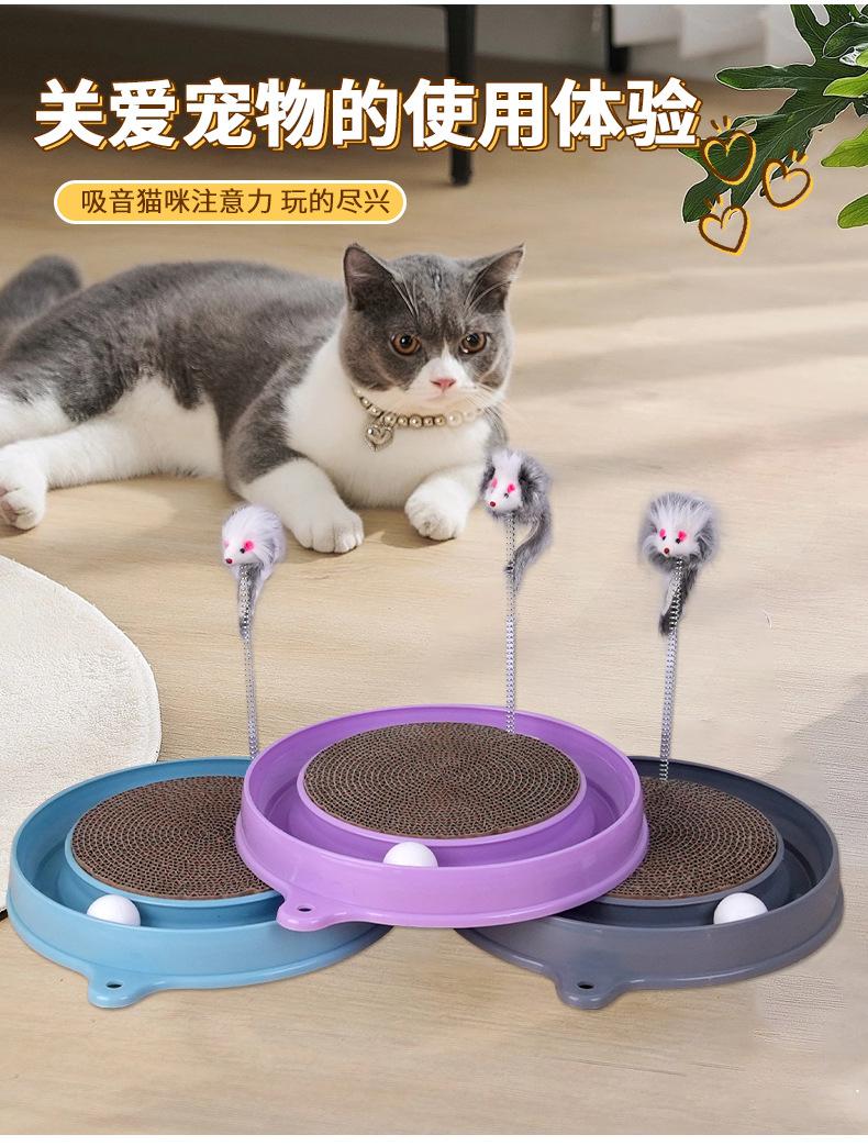 Fabricante de juguetes para gatos, rascador redondo, plato giratorio, papel corrugado, nido para gatos antipelusa, palo con resorte.