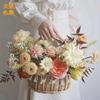 Cesta de flores de mimbre tejida a mano, cesta portátil para niña de las flores, arreglo floral de mimbre, regalo creativo de mano, cesta de flores de mimbre para floristería