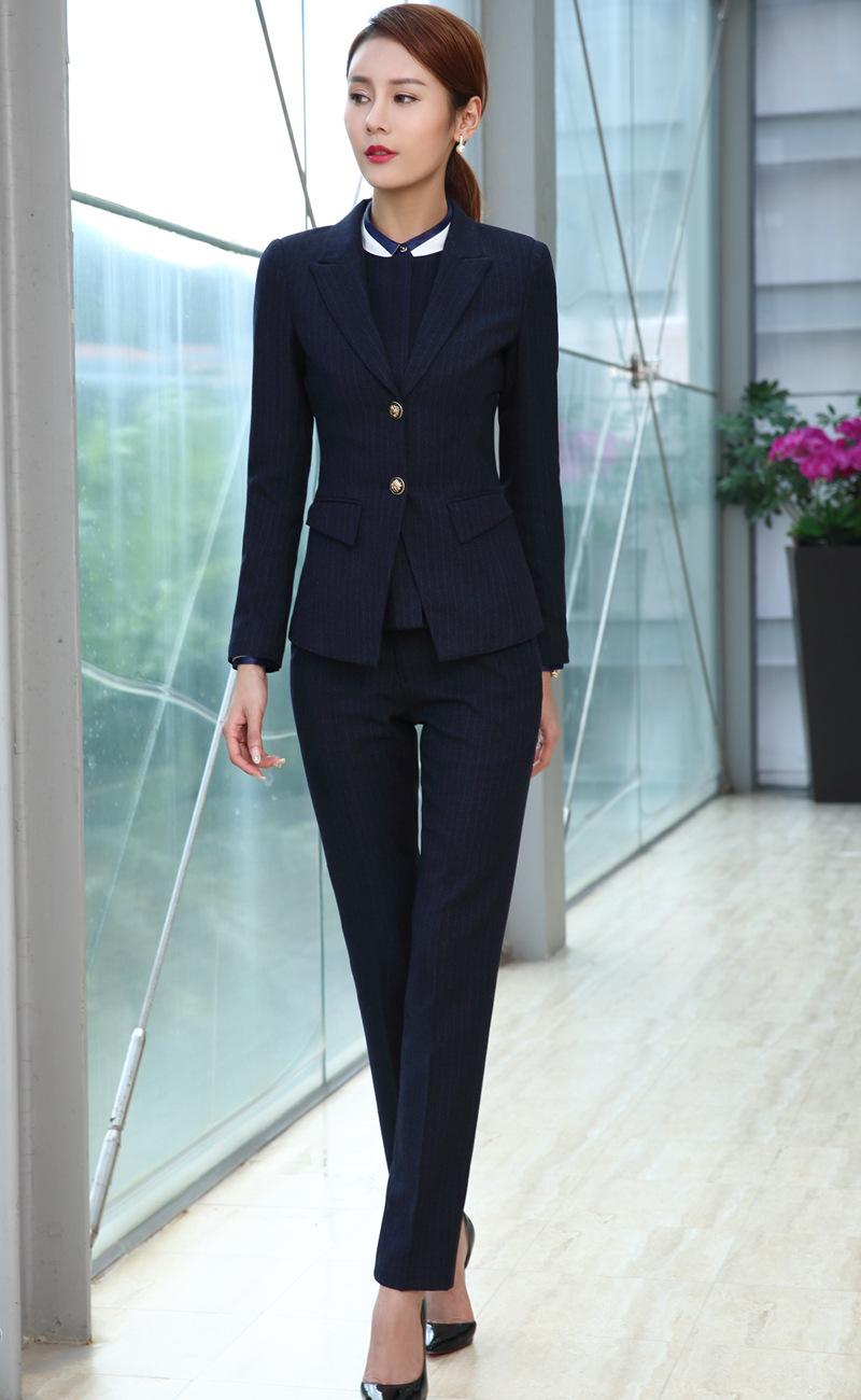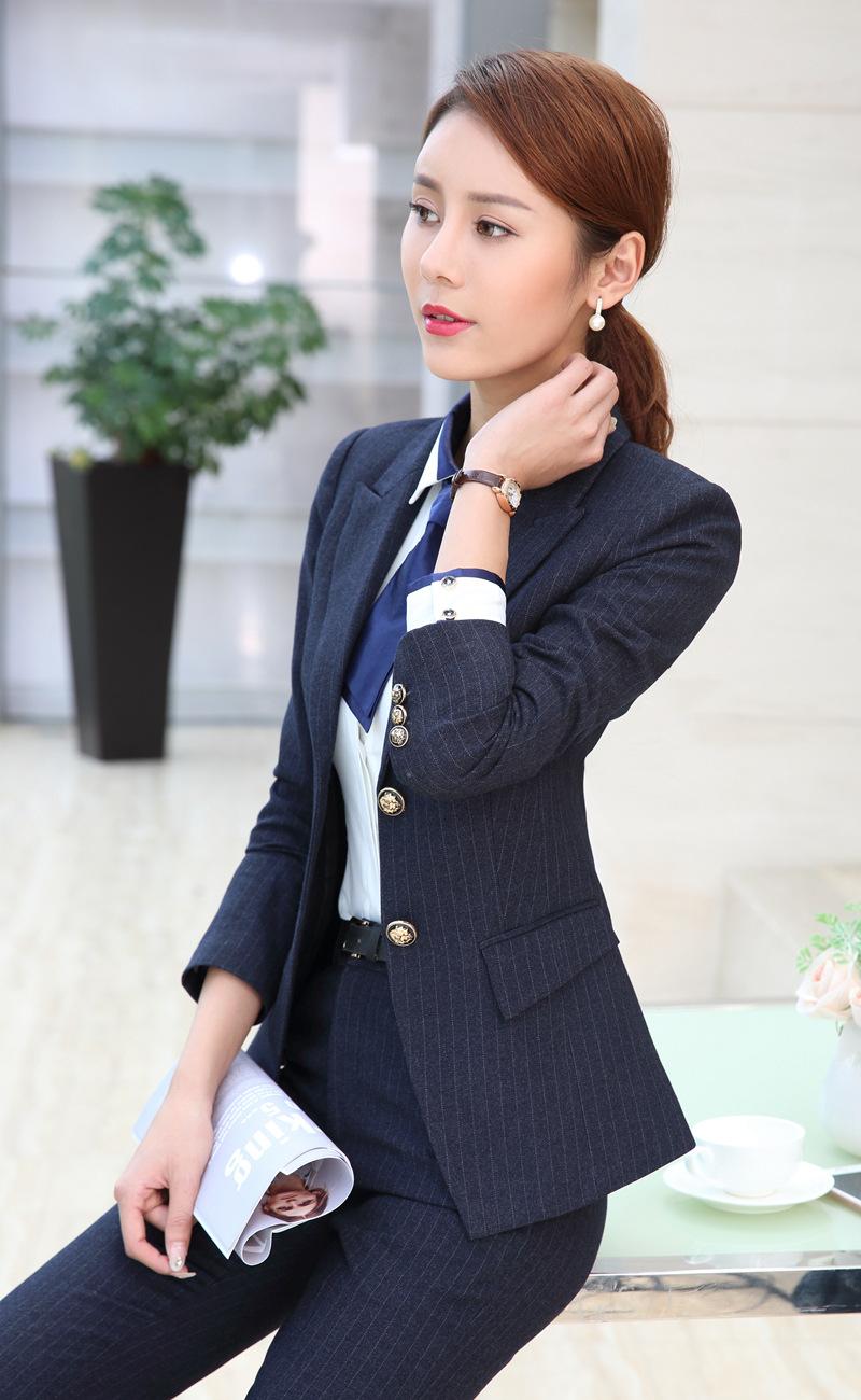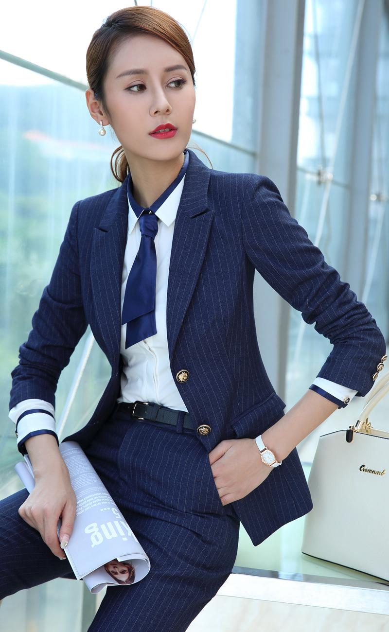 Otoño e Invierno Ropa de Negocios Traje de Mujer Vestido Traje a Rayas Entrevista Ropa de Trabajo Moda OL Joyería Tienda Pliegue