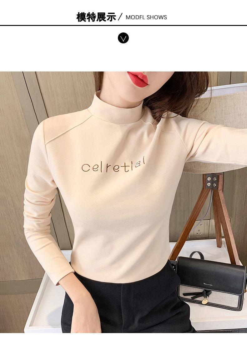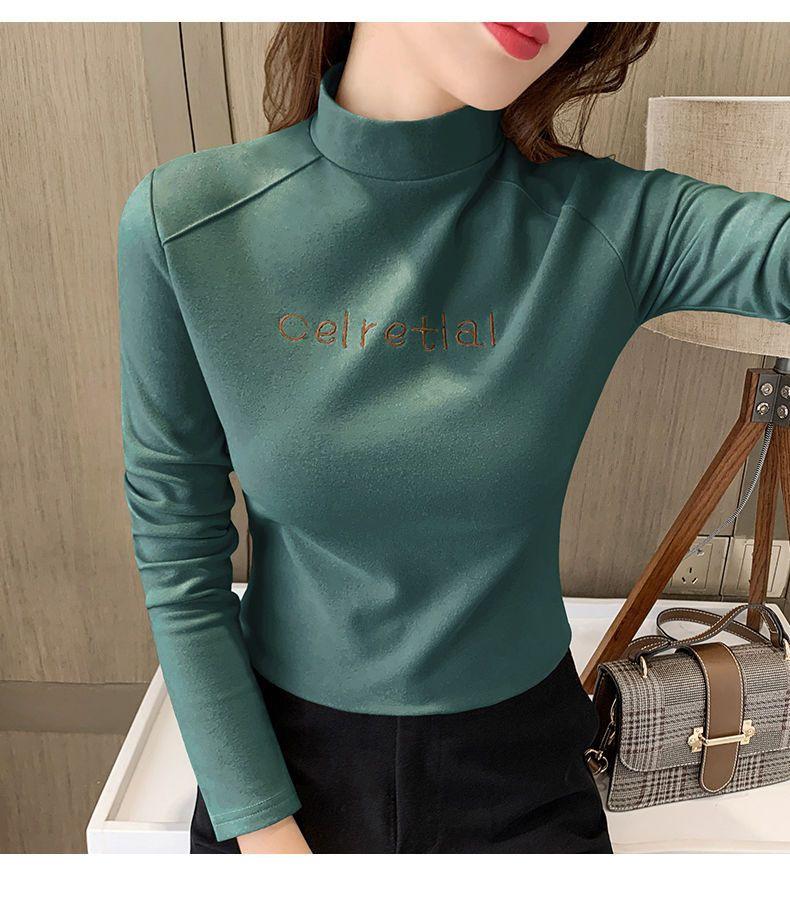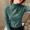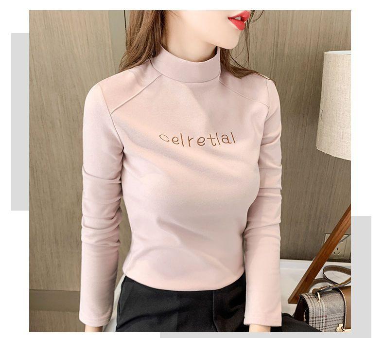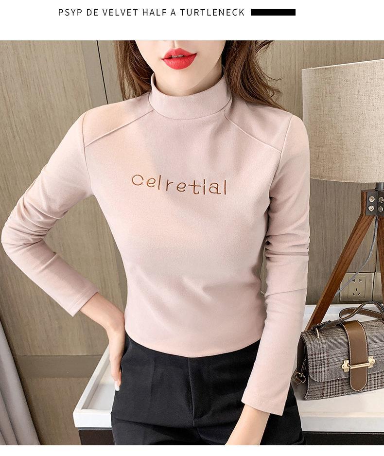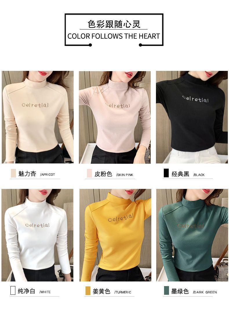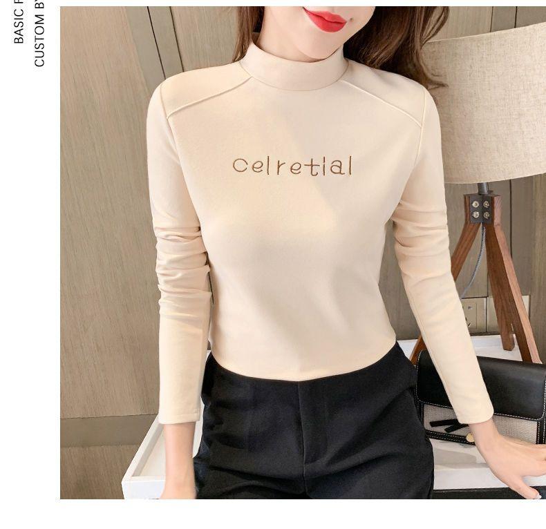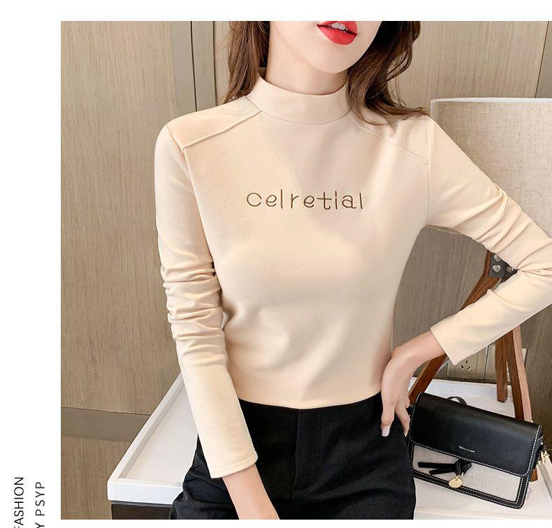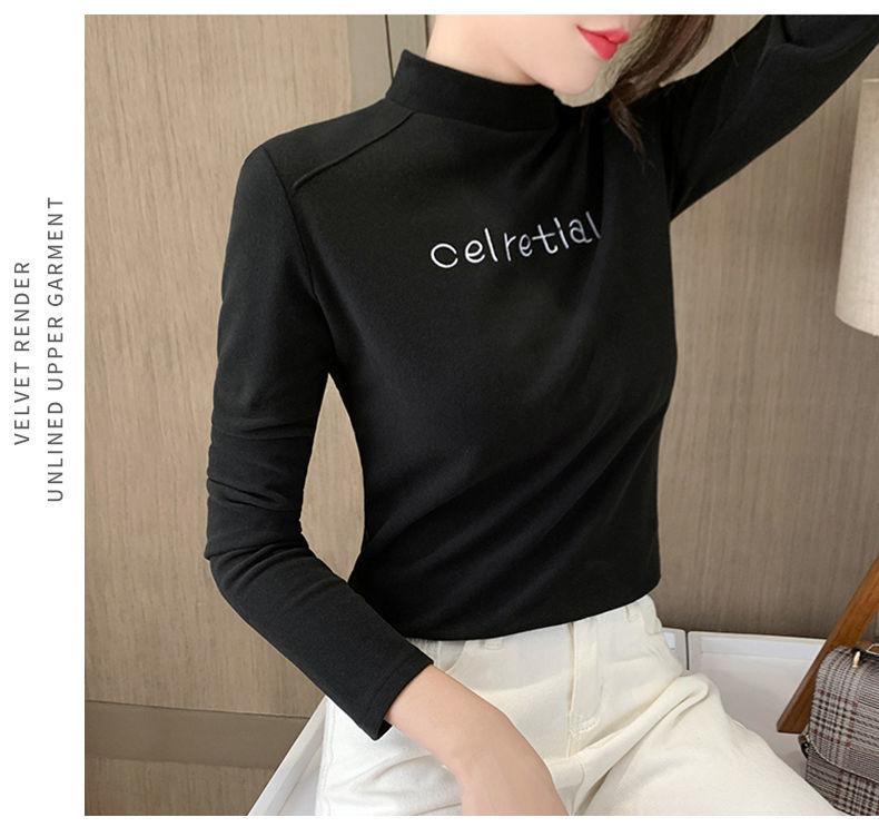 Camisa cálida de terciopelo de doble cara de 220k con cuello medio alto para mujer, otoño e invierno 2024, nueva camiseta de manga larga ajustada y combinable