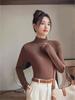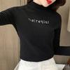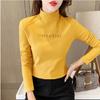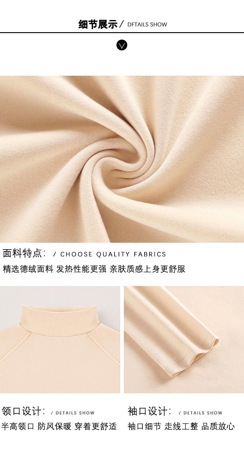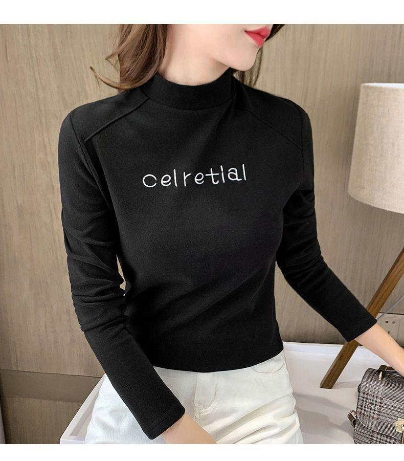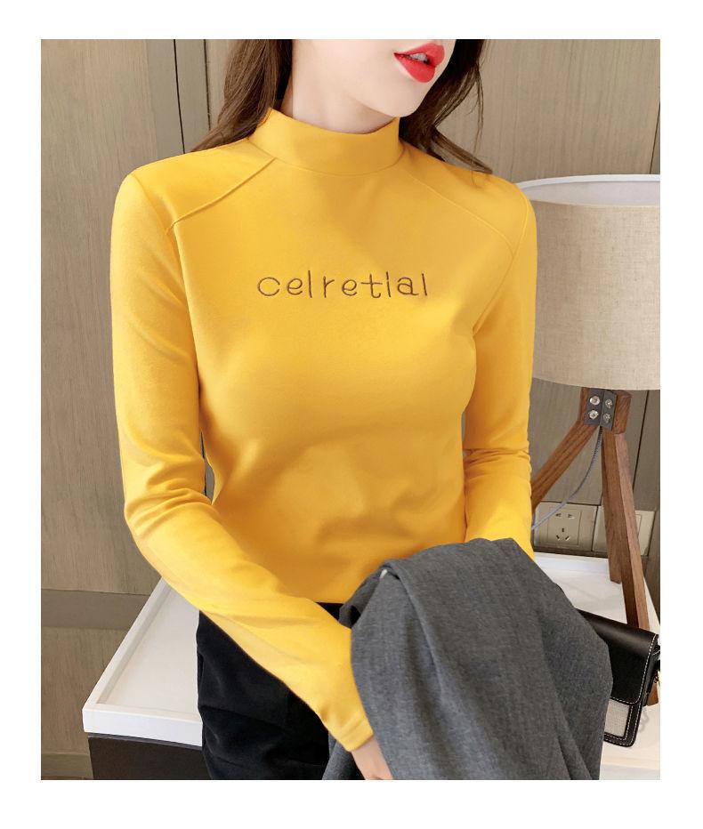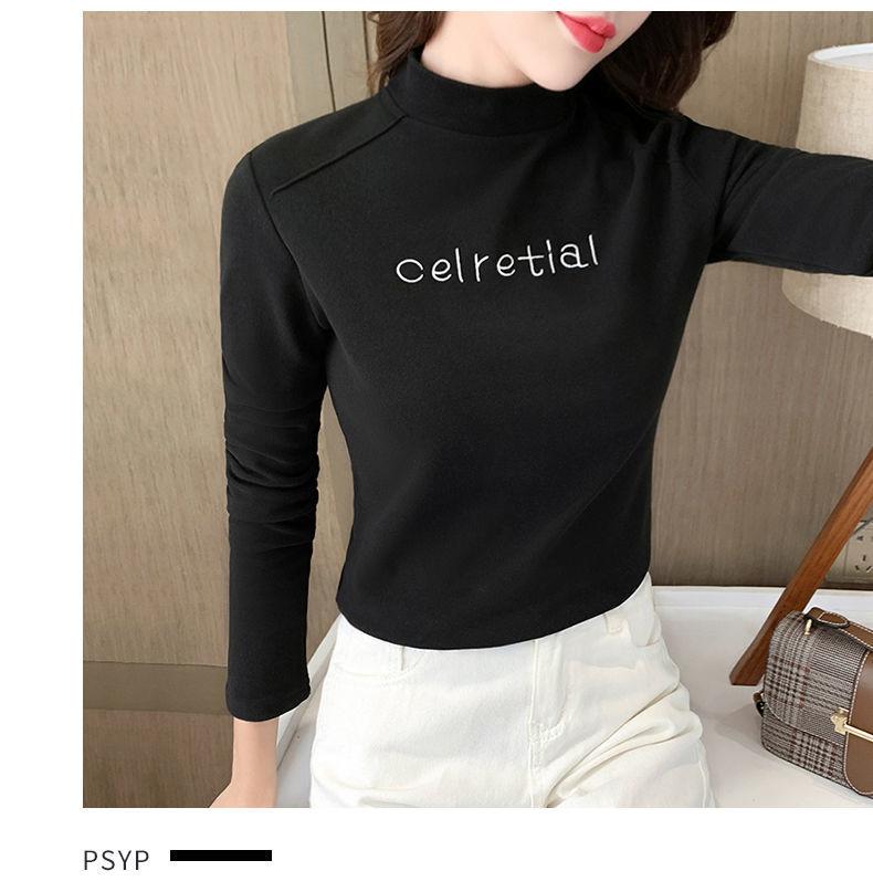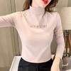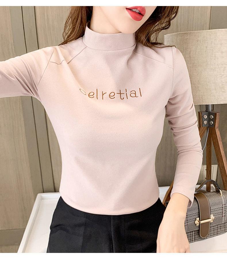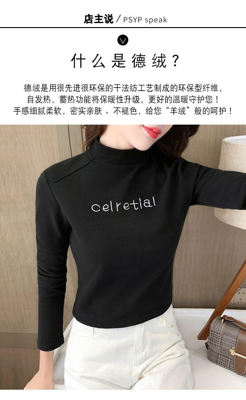 Camisa cálida de terciopelo de doble cara de 220k con cuello medio alto para mujer, otoño e invierno 2024, nueva camiseta de manga larga ajustada y combinable