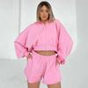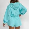 Conjunto casual deportivo de dos piezas con capucha y cremallera, sudadera corta y shorts, nuevo de Otoño e Invierno 2025 para mujer, estilo europeo y americano transfronterizo.