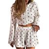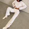 Pijama holgado y transpirable de dos piezas con pantalones cortos y mangas largas estampados para mujer, estilo europeo y americano, para el hogar, otoño e invierno.