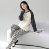 Conjunto de Pantalones Largos de Ropa de Casa para Mujer Otoño/Invierno de Gama Alta Empalmado Nuevo Estilo Transfronterizo de Cuello Redondo Pijama Tejido de Manga Larga