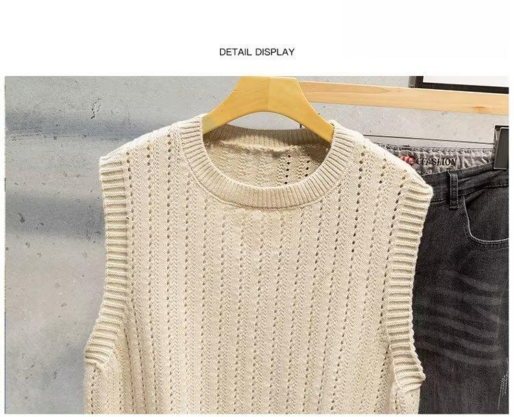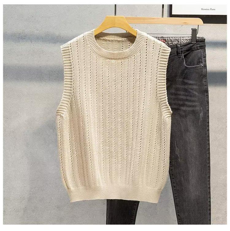Suéter sin mangas de cuello redondo de otoño 2023, chaleco informal holgado, suéter de punto, chaleco de estilo universitario