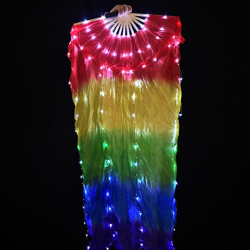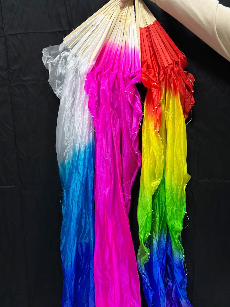 Colores del abanico: rojo, rojo rosa, amarillo, azul, verde, polvo tricolor