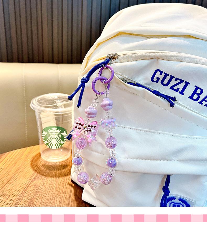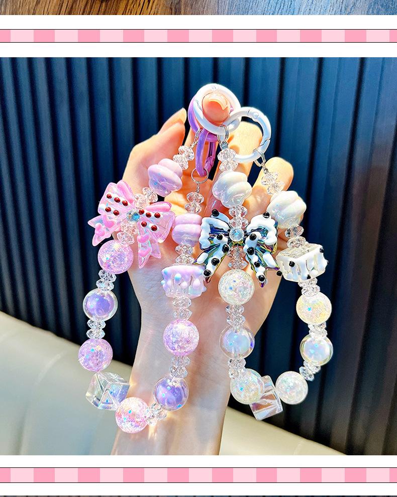 Llavero con lazo de cuentas, cadena para teléfono móvil, colgante para mochila escolar, correa de muñeca portátil, cadena para teléfono móvil, pequeño regalo