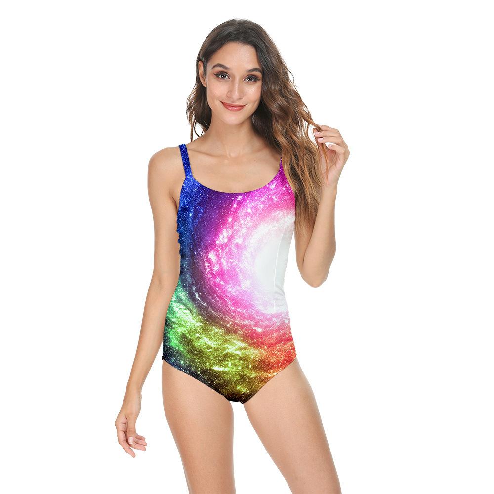 Traje de baño transfronterizo de Amazon con patrón de remolino, bikini sexy europeo y americano con tirantes, traje de baño de una pieza sin espalda para mujer