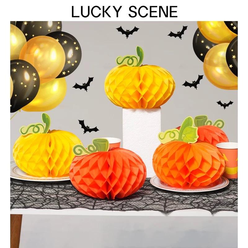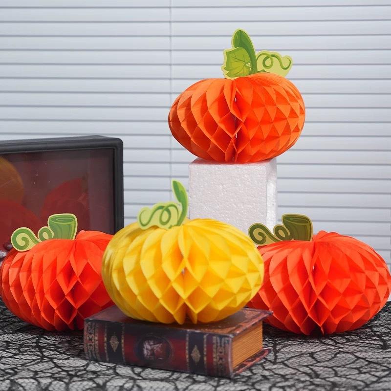 Adornos de bolas de panal de calabaza de Halloween al por mayor, decoración de escritorio para fiestas de Halloween con temática de Halloween.