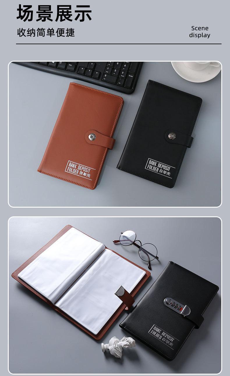 Certificado de tiempo de almacenamiento de depósito Este libro de almacenamiento de facturas multifunción de gran capacidad, cheque, giro postal, comprobante de depósito, bolsa de almacenamiento de tarjetas de acceso.