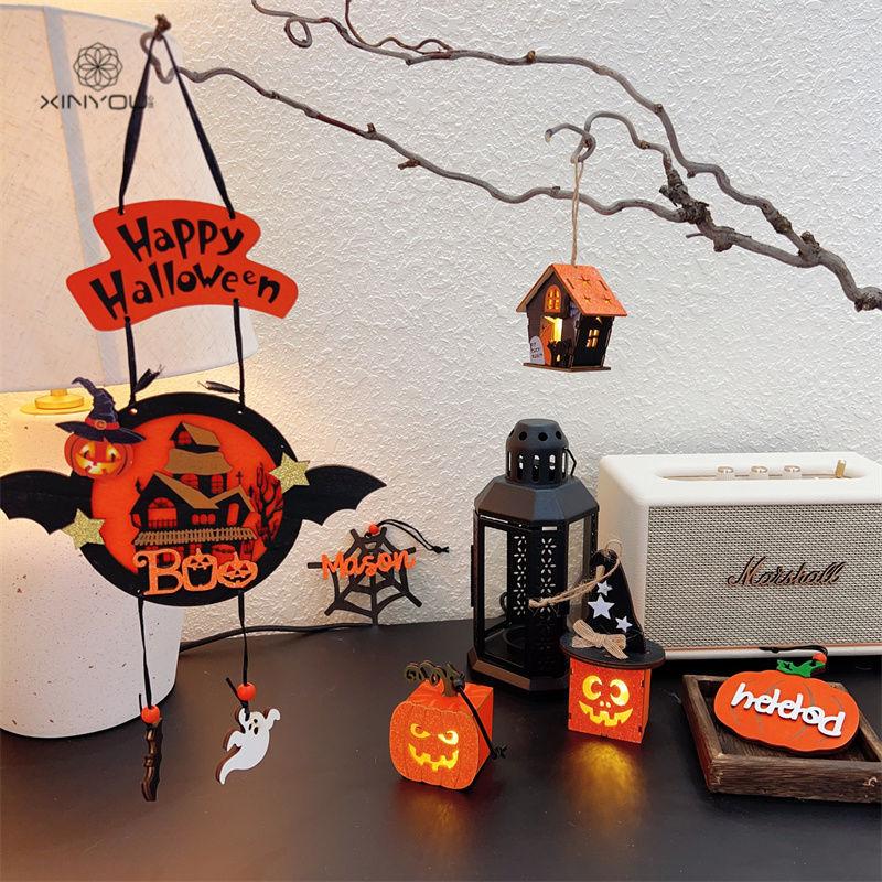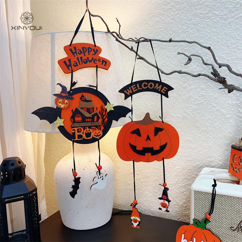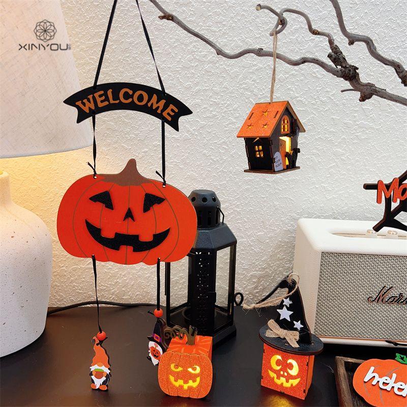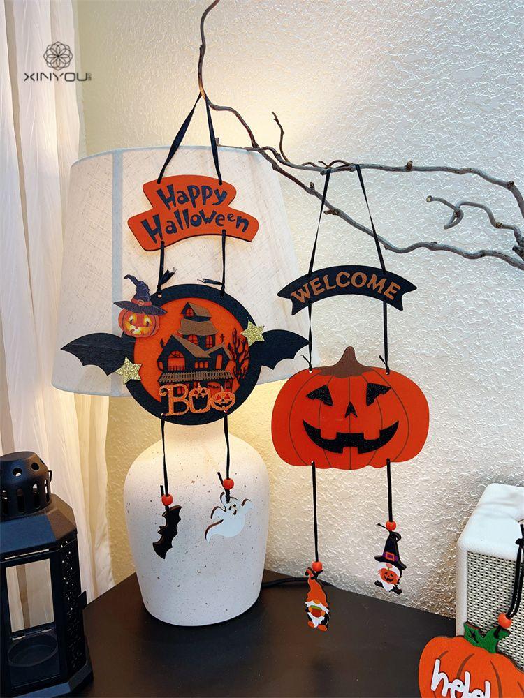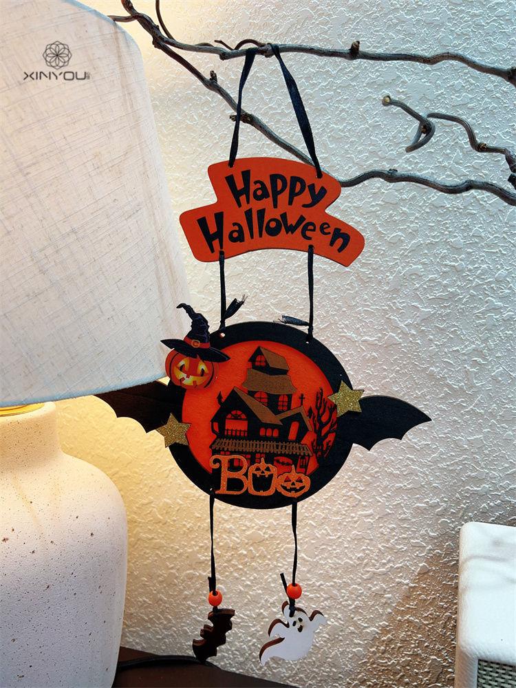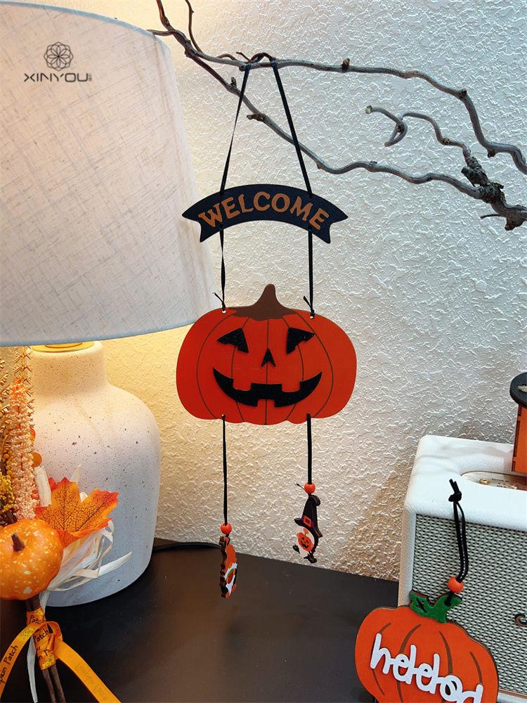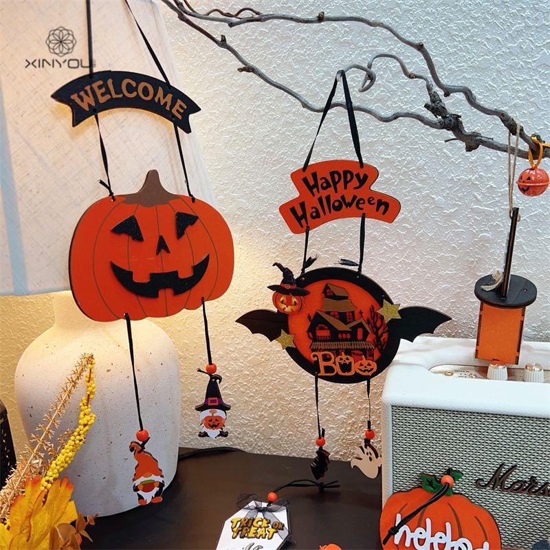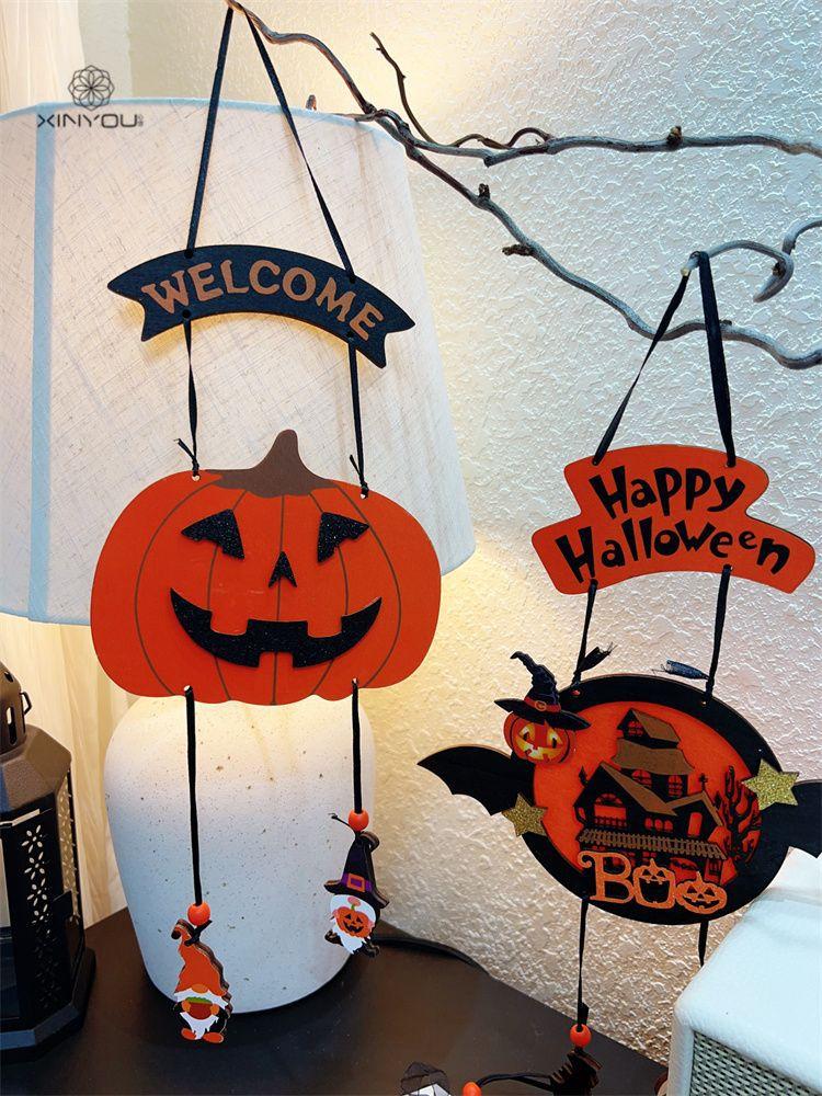 Nuevo Halloween Transfronterizo Decoraciones de Madera Colgante de Puerta Pared Calabaza Casa Embrujada Fantasma Creativo Letrero de Madera Decorativo Venta al por Mayor