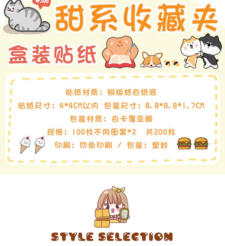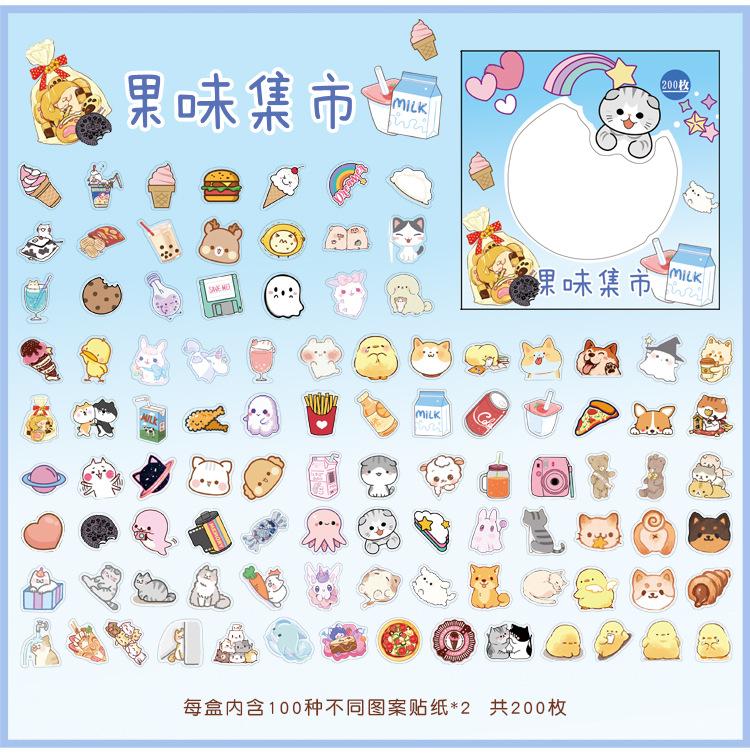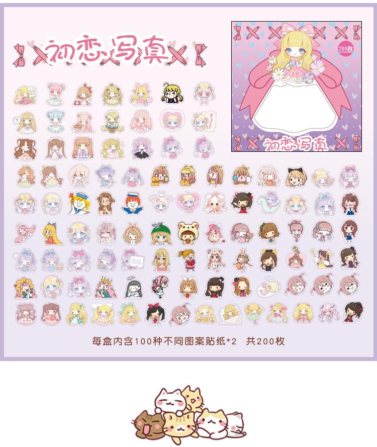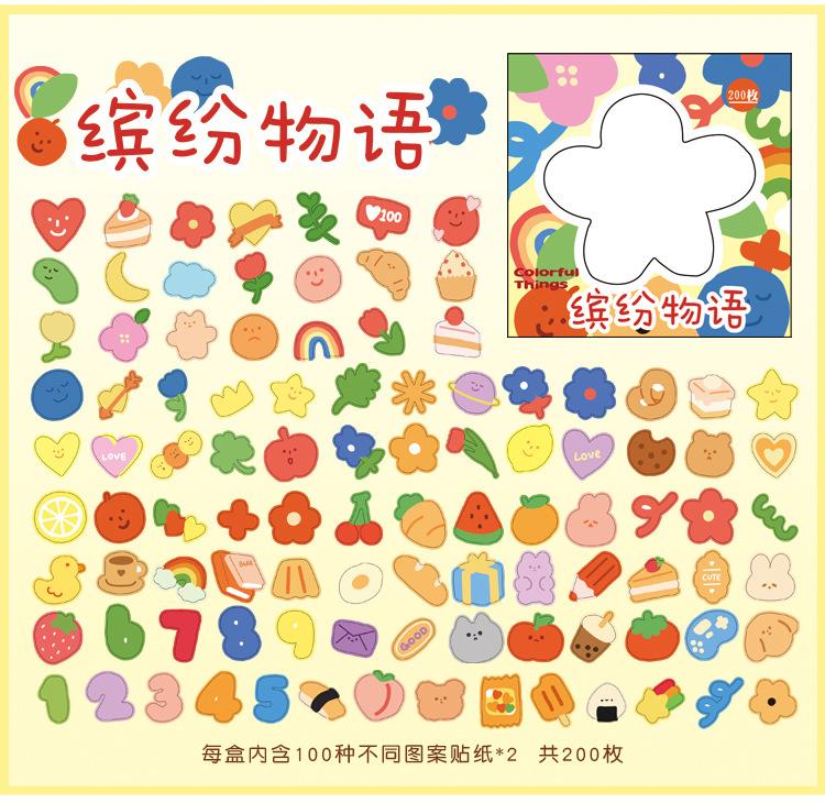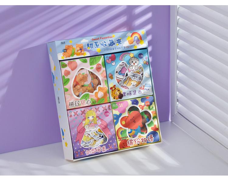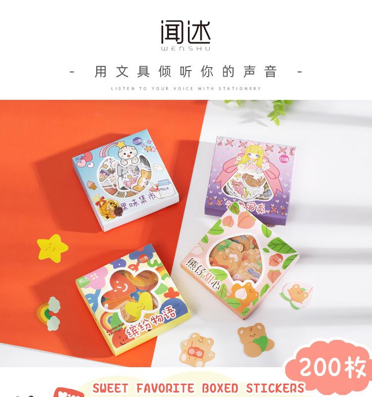 Colección Wen Shu Sweet, 200 pegatinas en caja, 4 pegatinas decorativas Guka con cuenta de mano