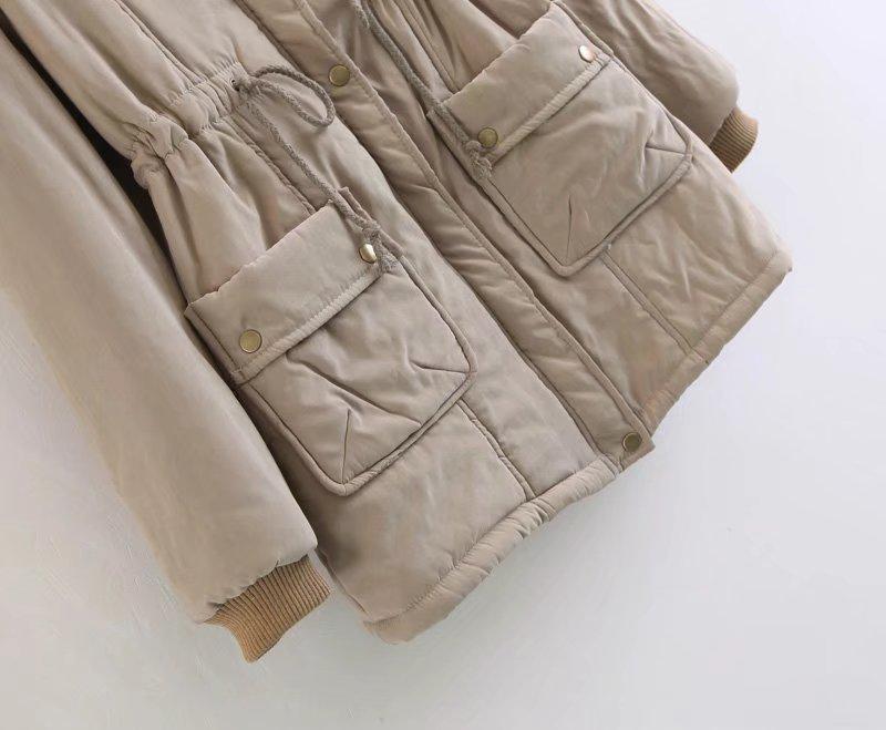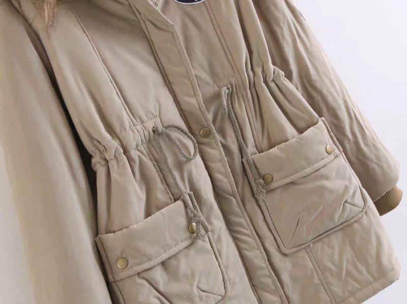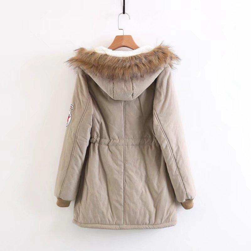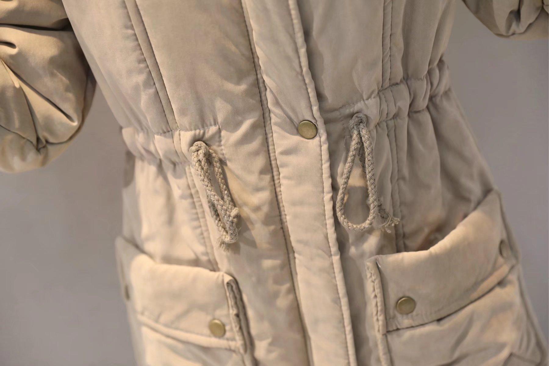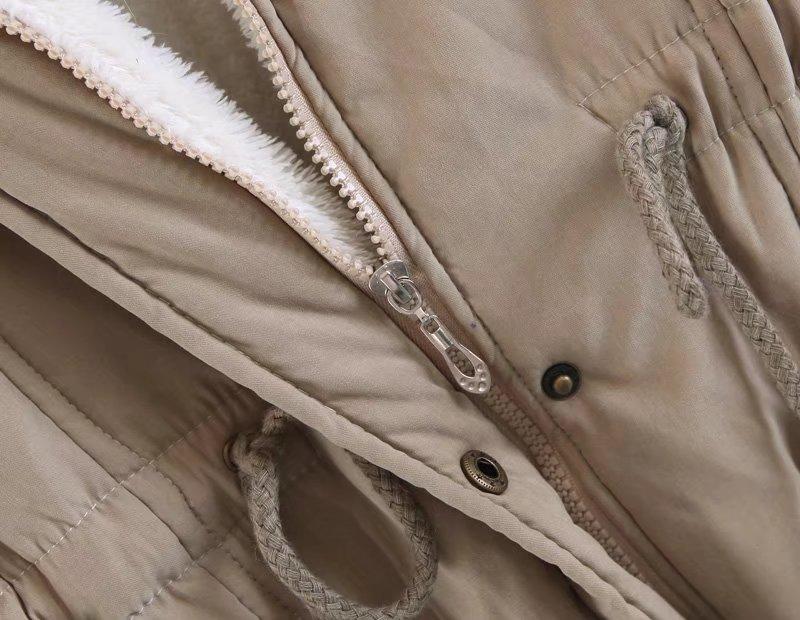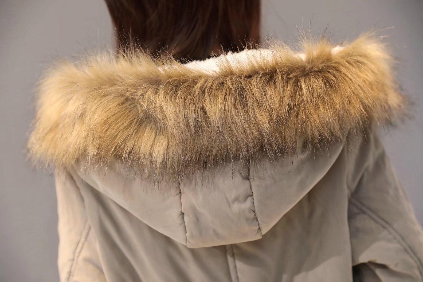 2025 Otoño/Invierno Nuevo Estilo Coreano Moda Abrigo de Algodón de Largo Medio con Capucha y Cintura Ajustable, Grueso, con Cuello Grande de Piel para Mujer