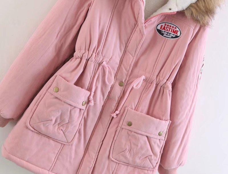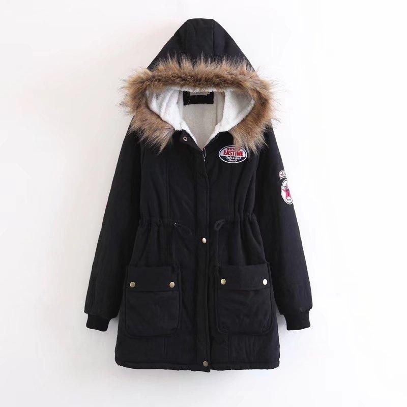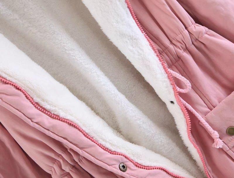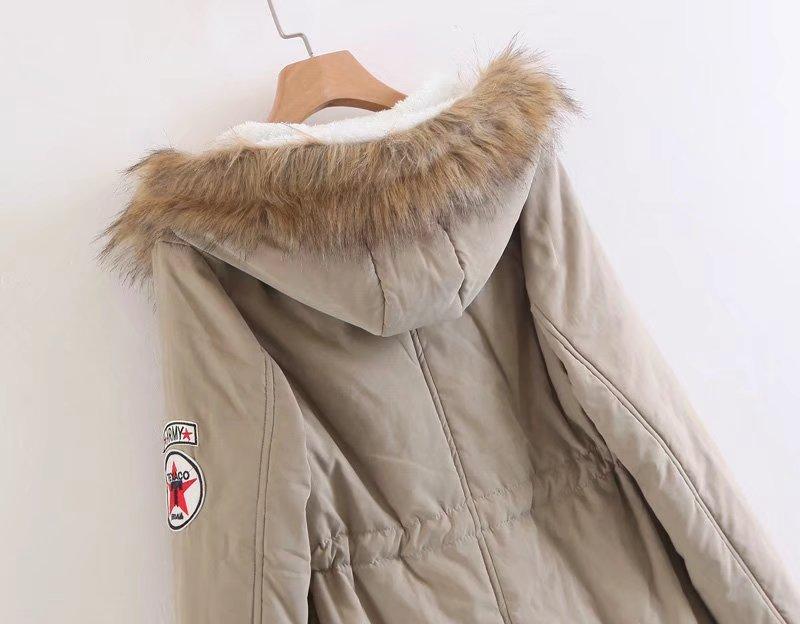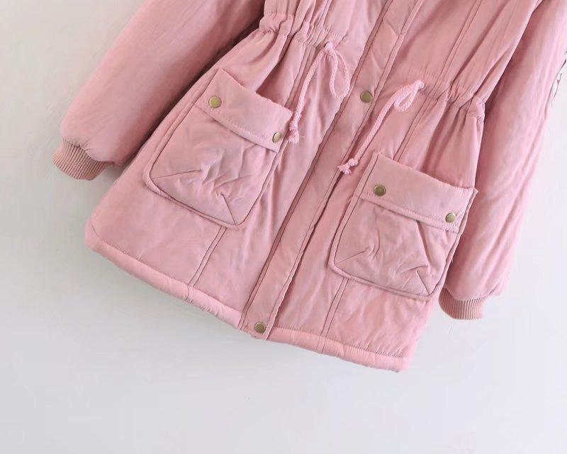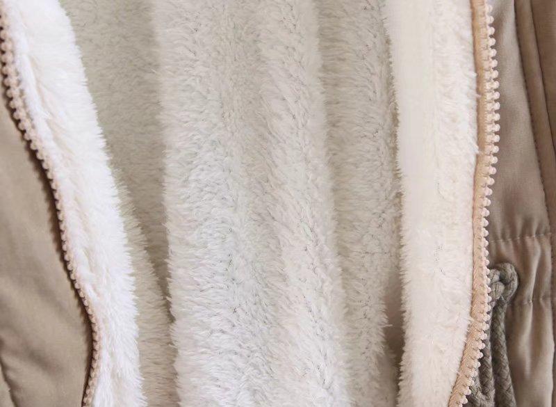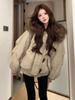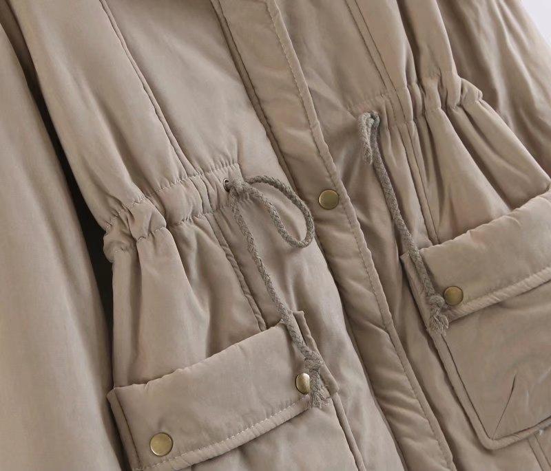 2025 Otoño/Invierno Nuevo Estilo Coreano Moda Abrigo de Algodón de Largo Medio con Capucha y Cintura Ajustable, Grueso, con Cuello Grande de Piel para Mujer