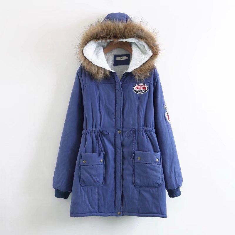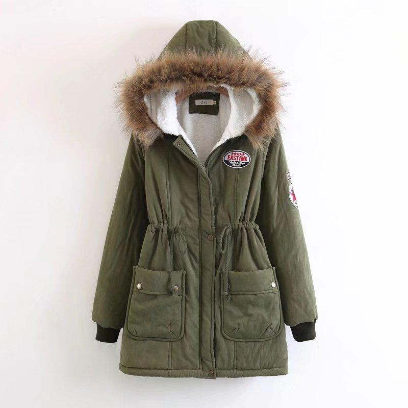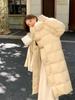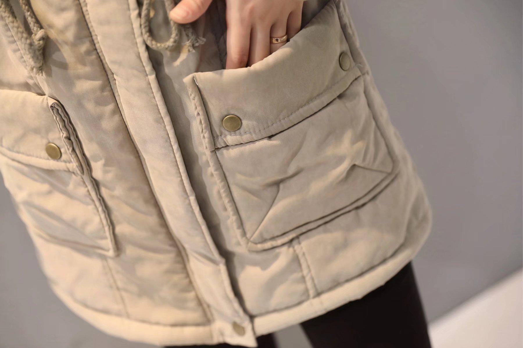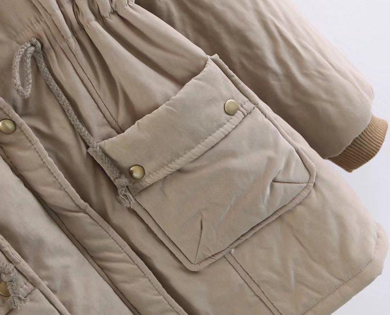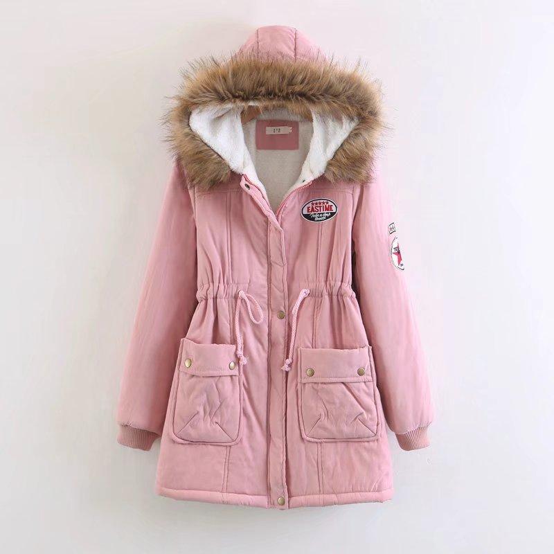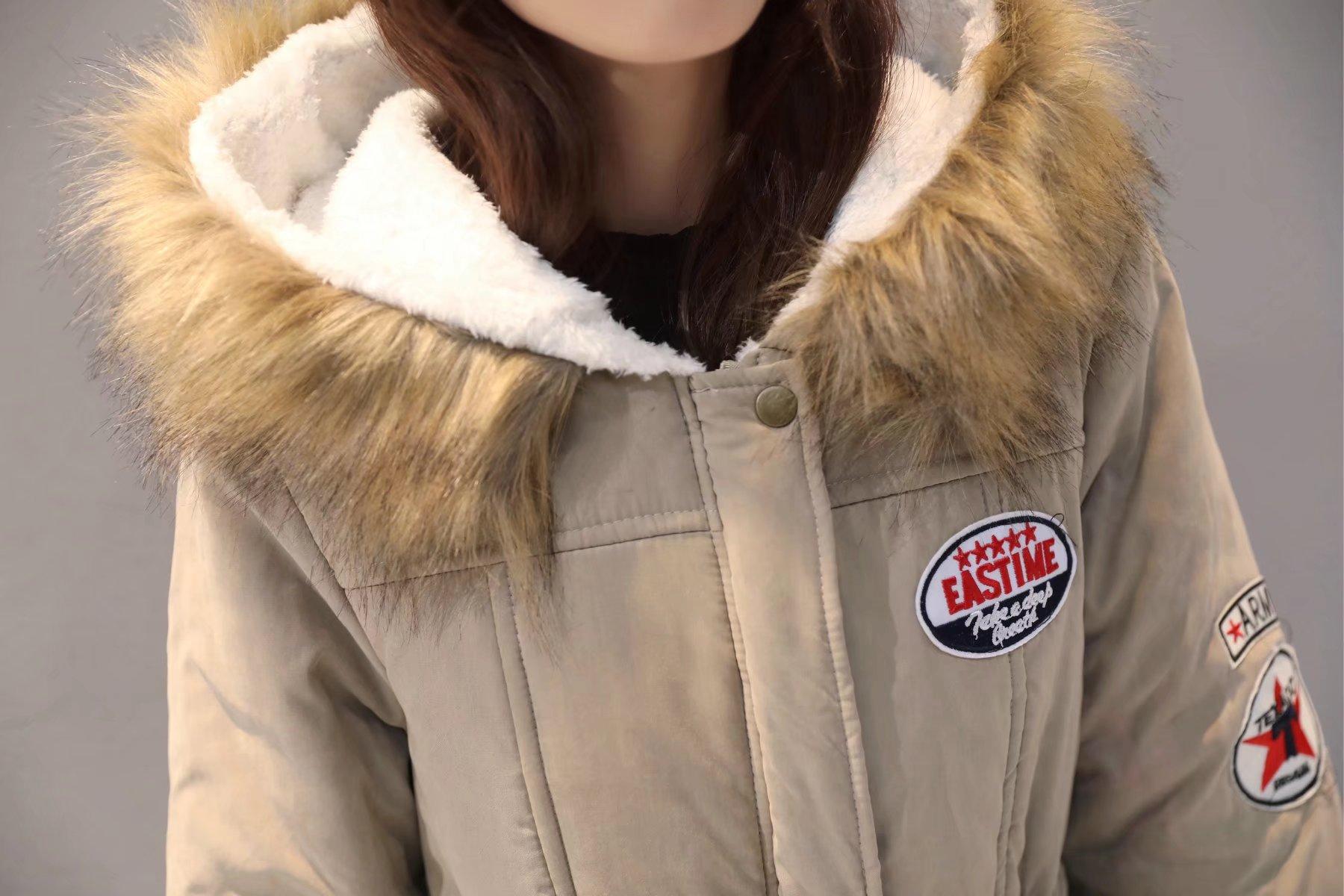 2025 Otoño/Invierno Nuevo Estilo Coreano Moda Abrigo de Algodón de Largo Medio con Capucha y Cintura Ajustable, Grueso, con Cuello Grande de Piel para Mujer
