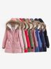2025 Otoño/Invierno Nuevo Estilo Coreano Moda Abrigo de Algodón de Largo Medio con Capucha y Cintura Ajustable, Grueso, con Cuello Grande de Piel, Chaqueta para Mujer