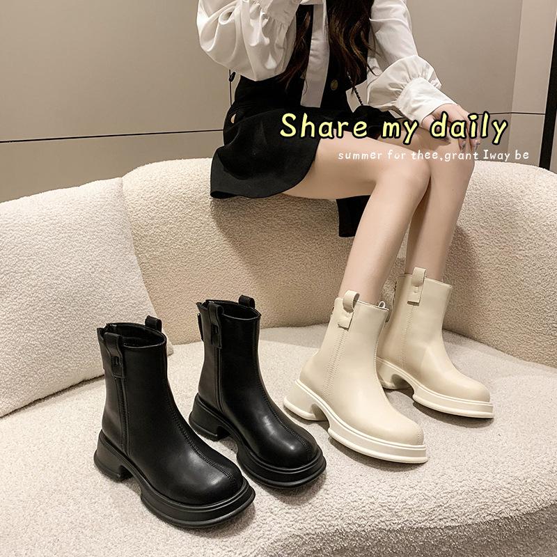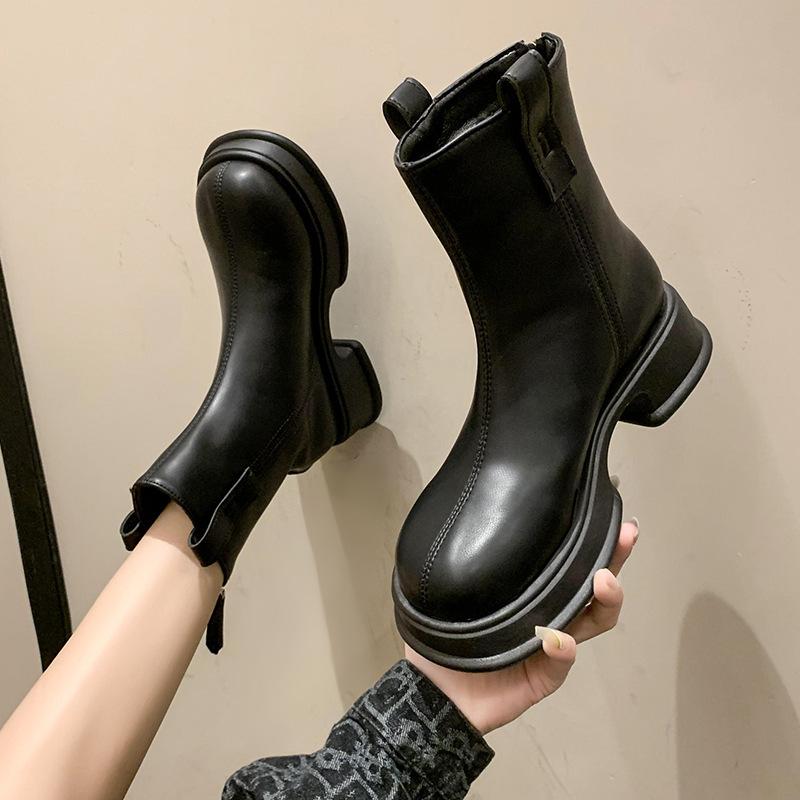 Botas de moda estilo británico retro de comercio exterior transfronterizo para mujer, invierno 2024, nuevas botas de moda Joker de tacón grueso y suela gruesa, al por mayor