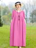 2026 Vestido Nuevo de Algodón y Seda Moda de Verano Algodón Artificial Holgado Tallas Grandes Ropa de Abrigo Vestido de Longitud Media