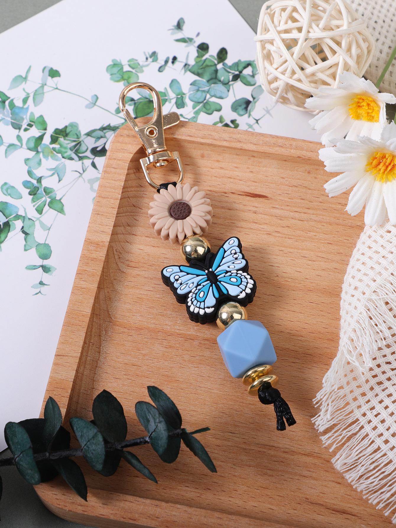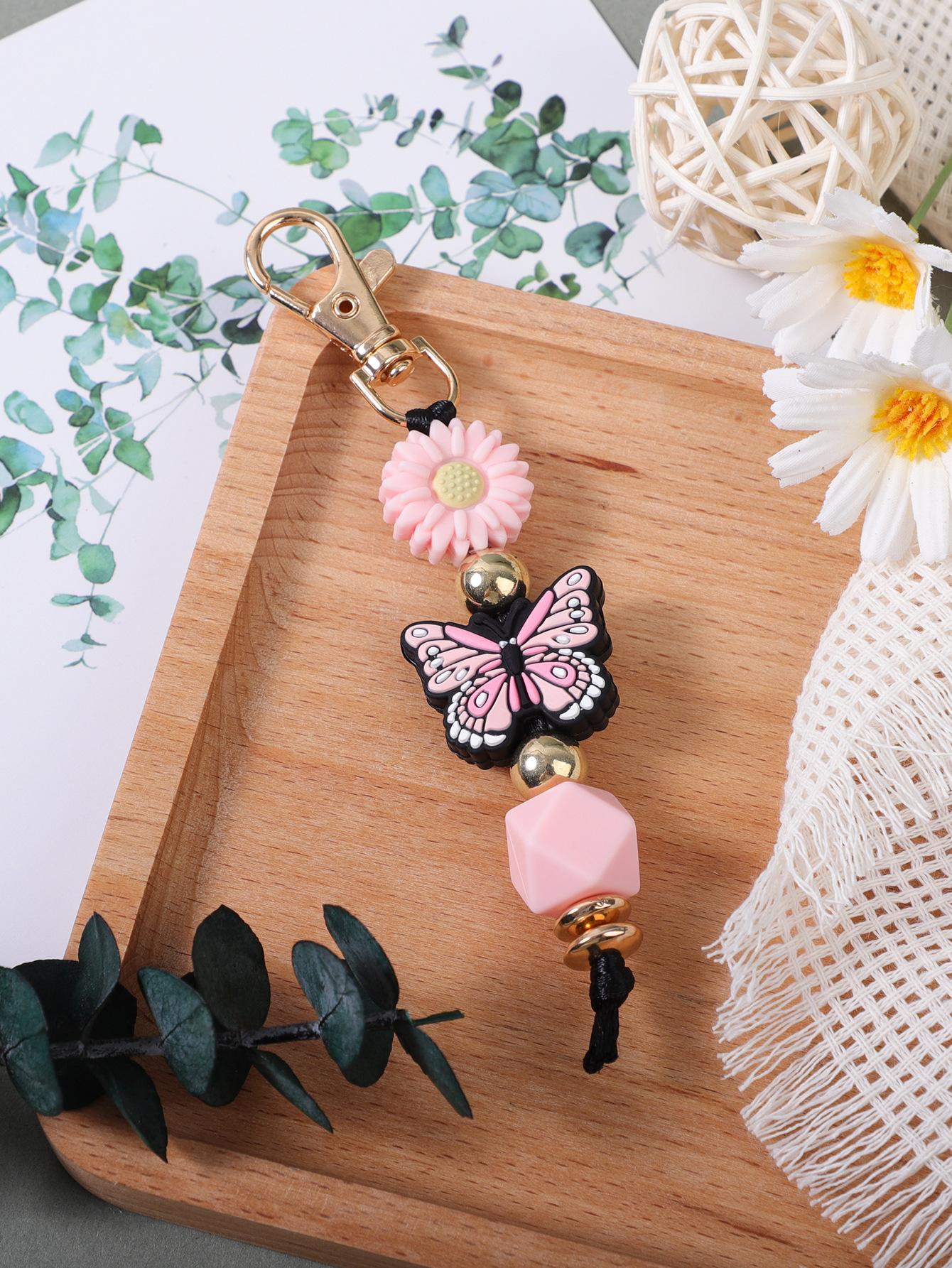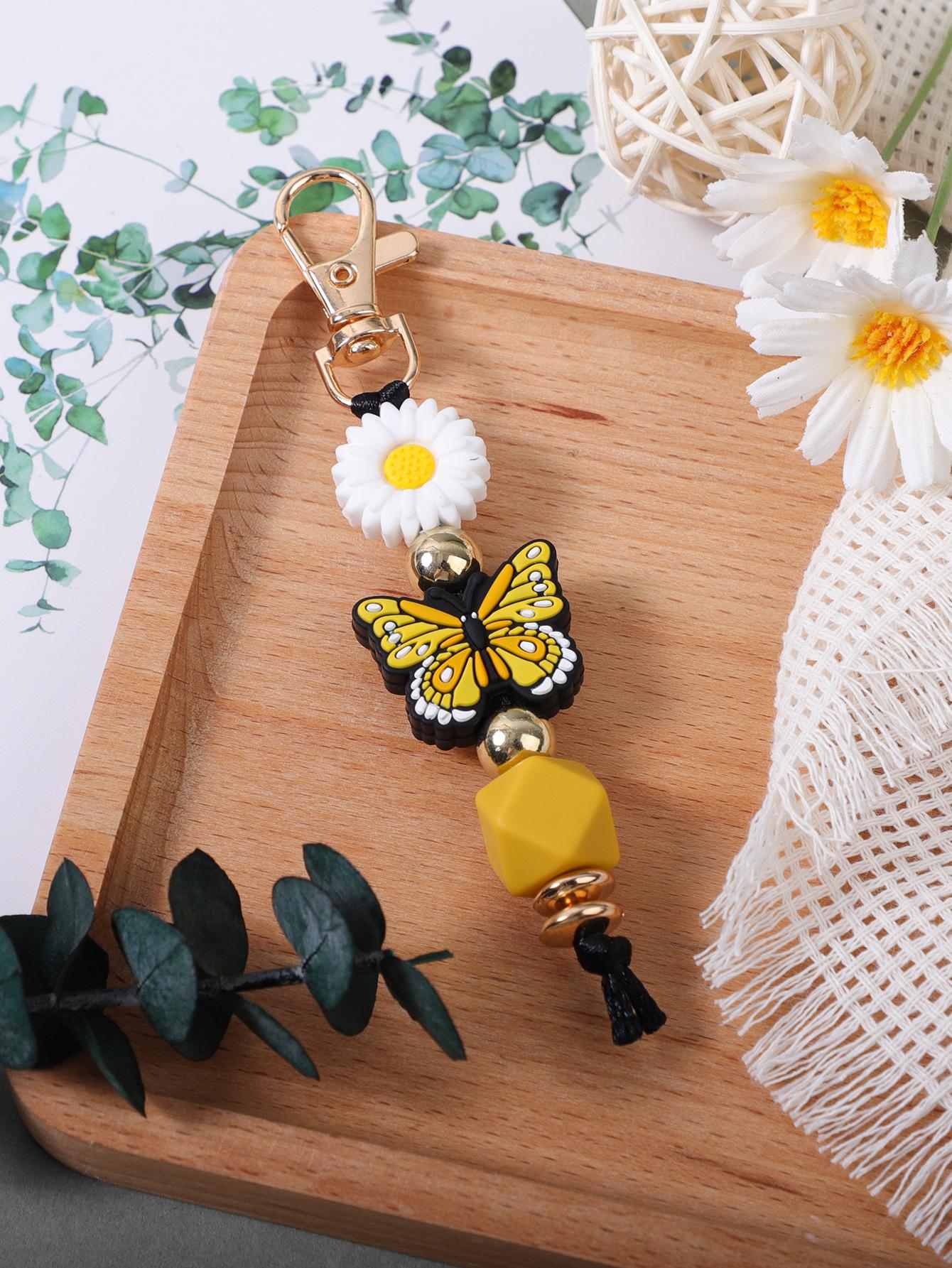 Colgante de silicona con cuentas hecho a mano transfronterizo, creativo, DIY, con diseño de mariposa y margaritas, para bolso, llavero.