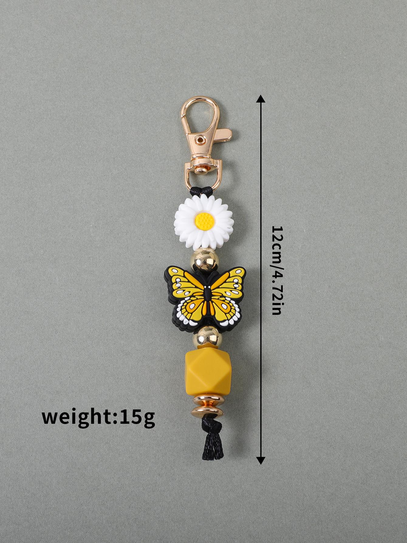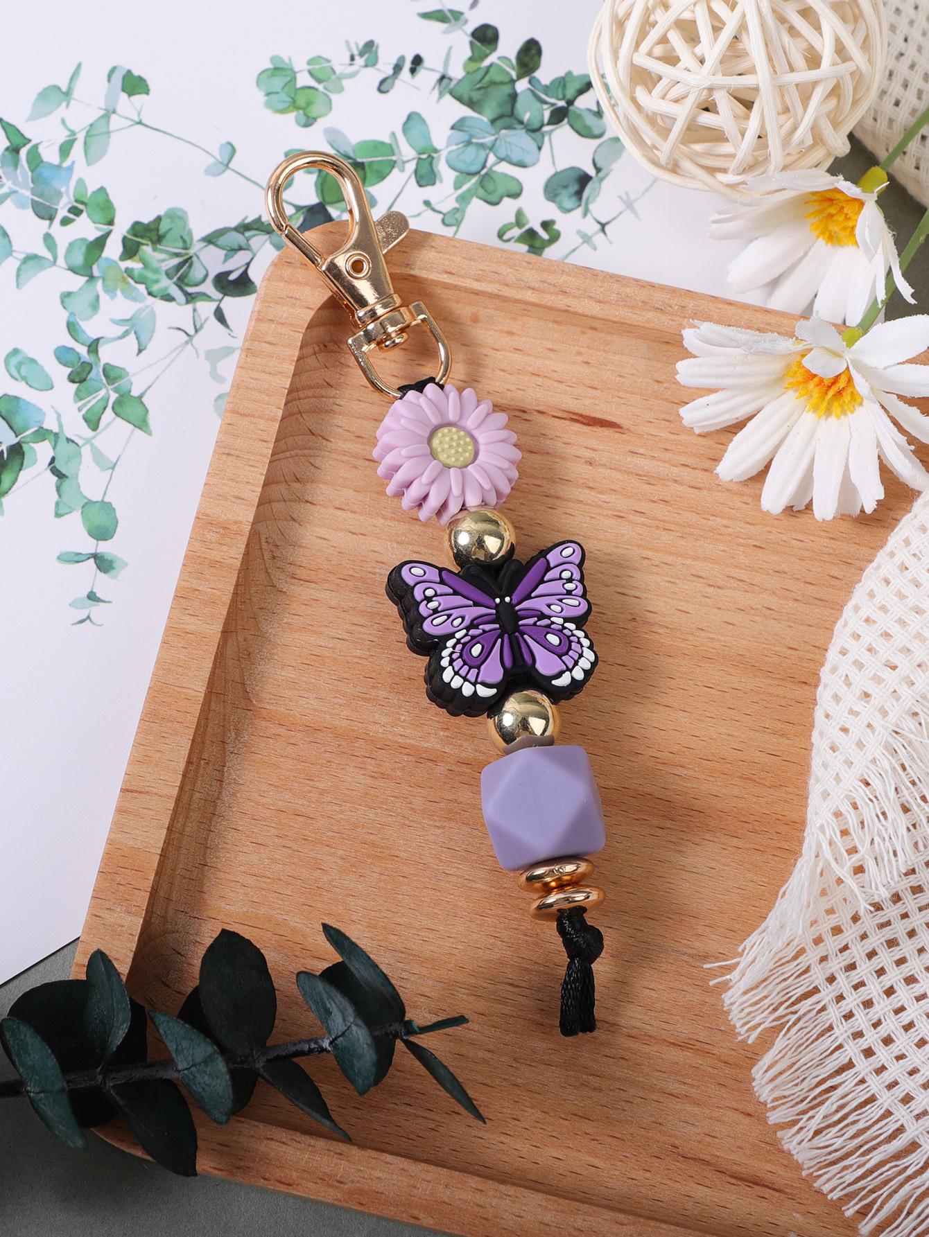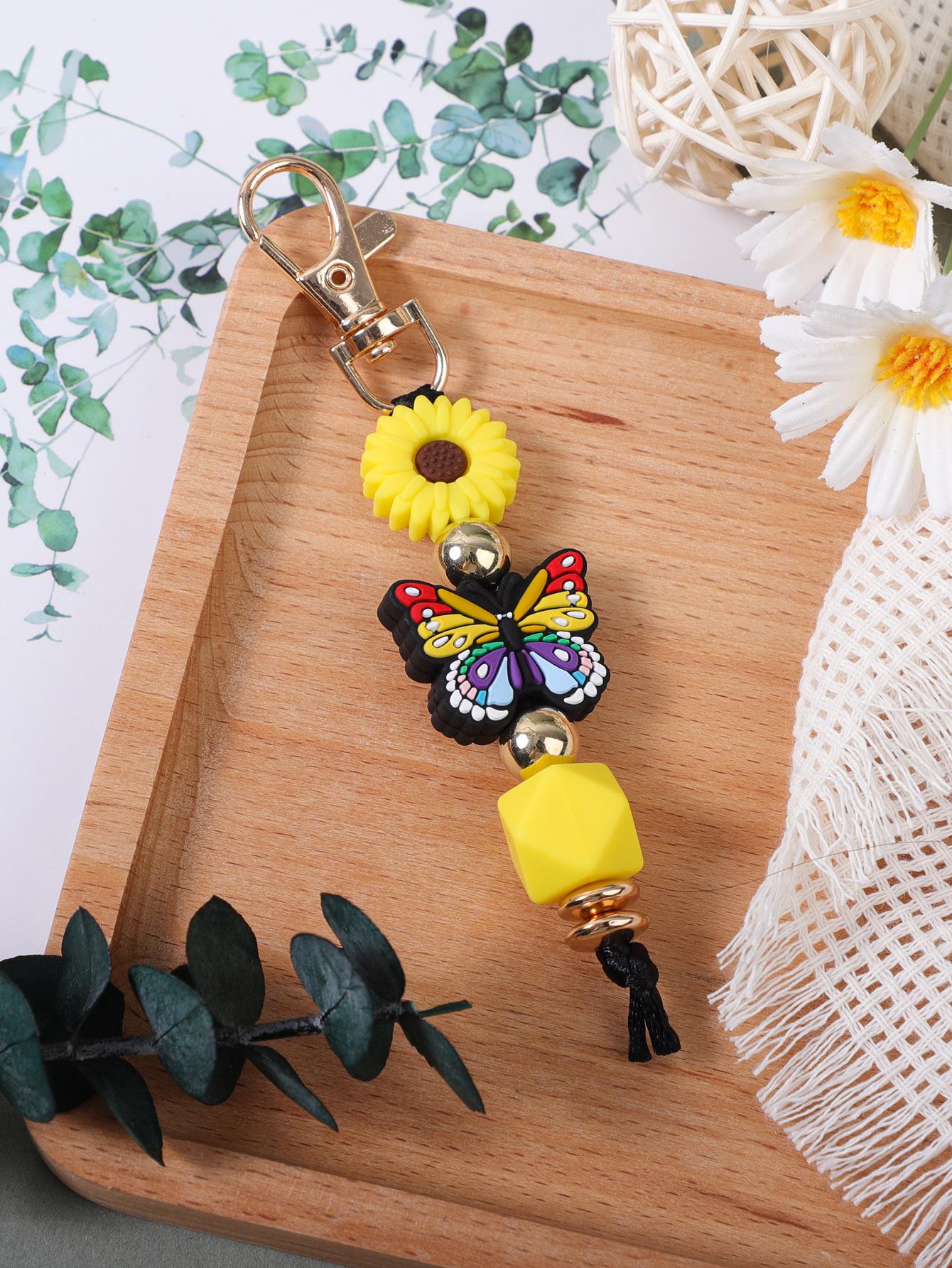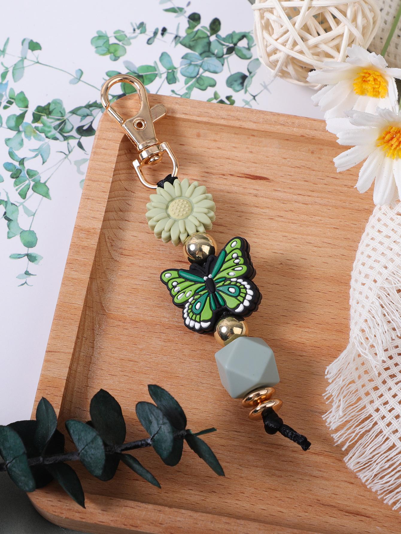 Colgante de silicona con cuentas hecho a mano transfronterizo, creativo, DIY, con diseño de mariposa y margaritas, para bolso, llavero.