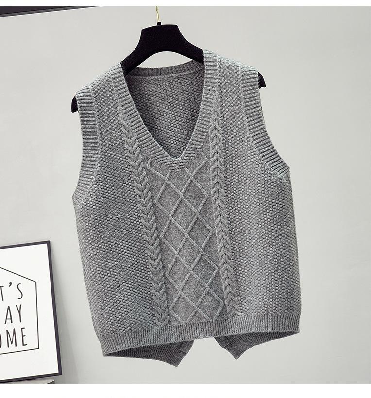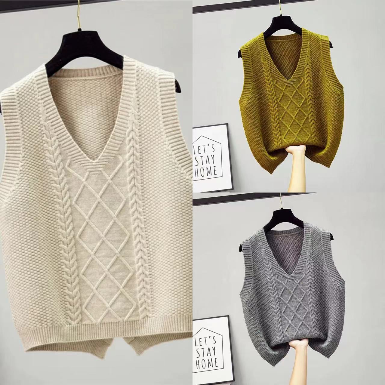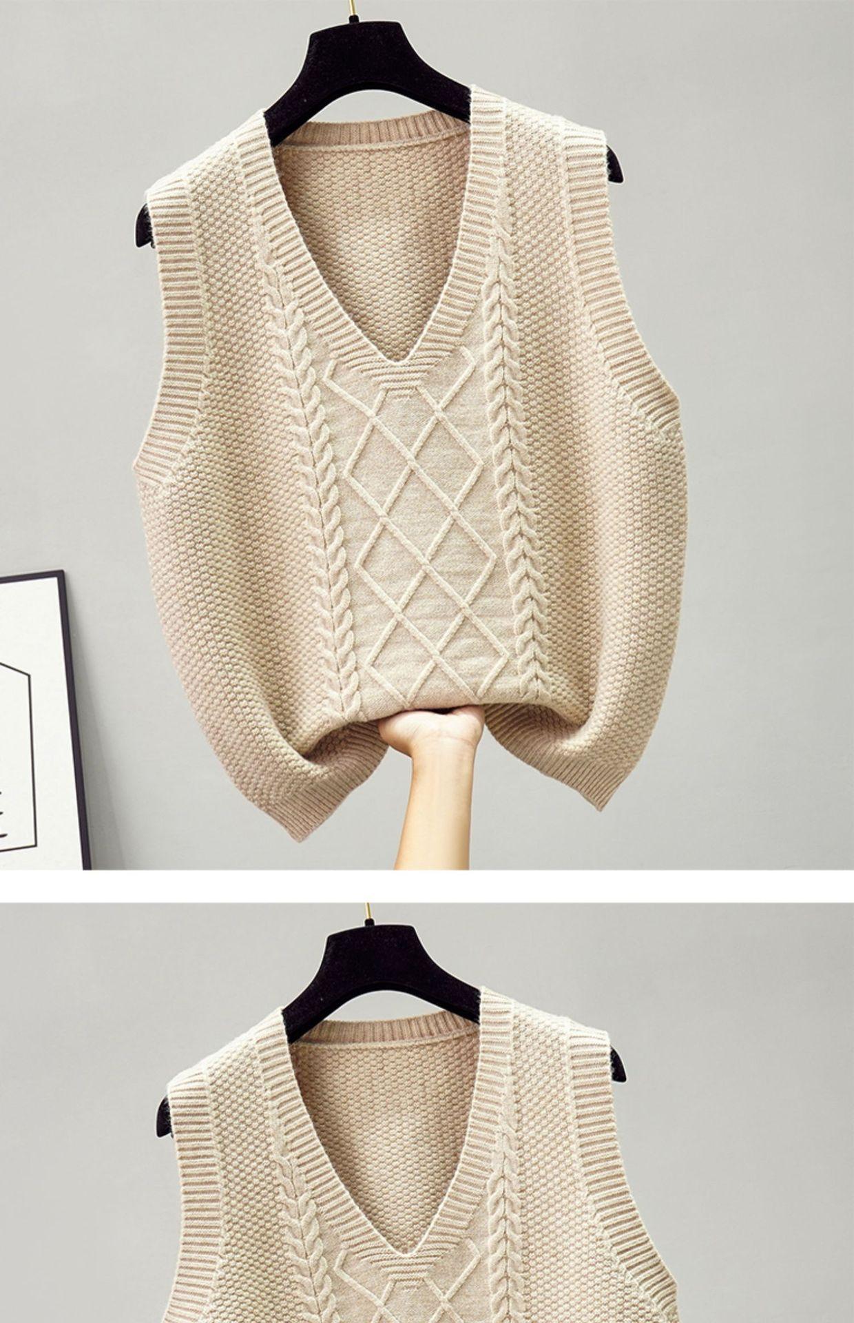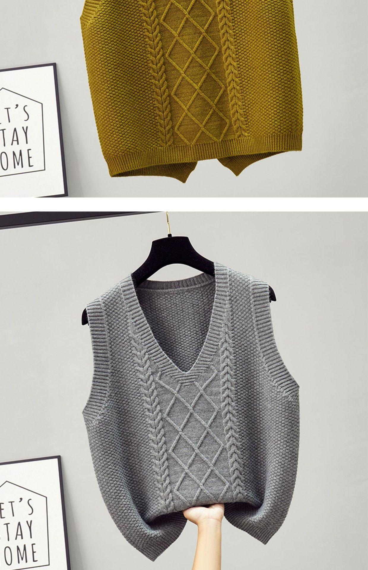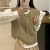 Chaleco Casual para Mujer Primavera y Otoño Nuevo Retro Color Sólido Cuello en V Camisa Apilada Sin Mangas Tejido Suéter Suelto