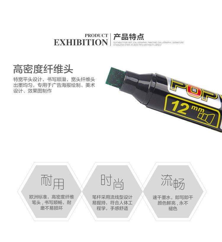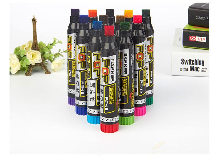 Plumón POP de Punta Ancha Grande de 12 Colores 12mm Marcador de Aceite Impermeable Publicidad de Supermercado Marcador para Póster Pintado a Mano
