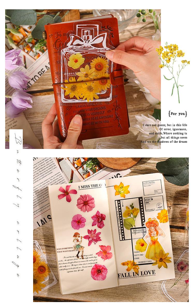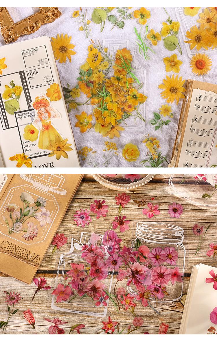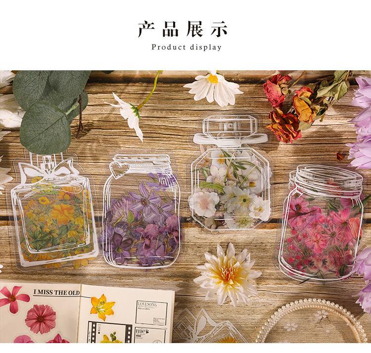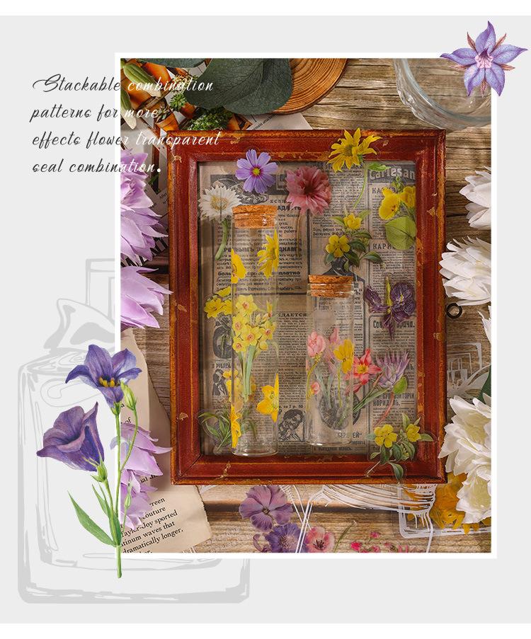 Serie Historia de Botellas PET Flor Planta Transparente Bolsa de Stickers para Cuenta de Mano Material para Decoración de Cuenta de Mano Stickers DIY