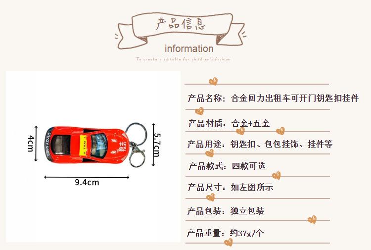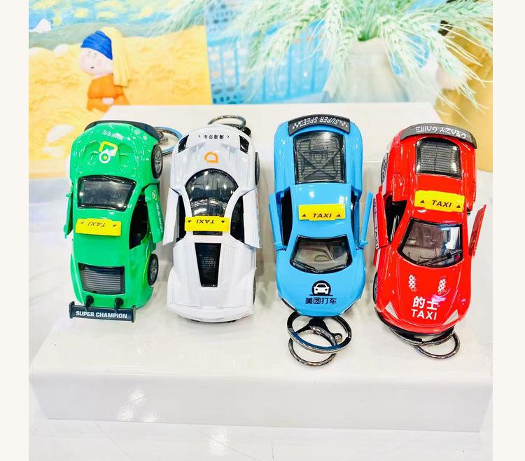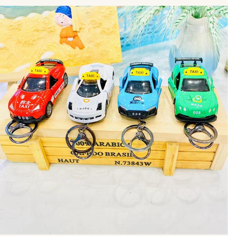 Llavero colgante de juguete de carreras con diseño de coche de simulación Didi con puerta abierta y diseño de taxi Huili de aleación.