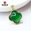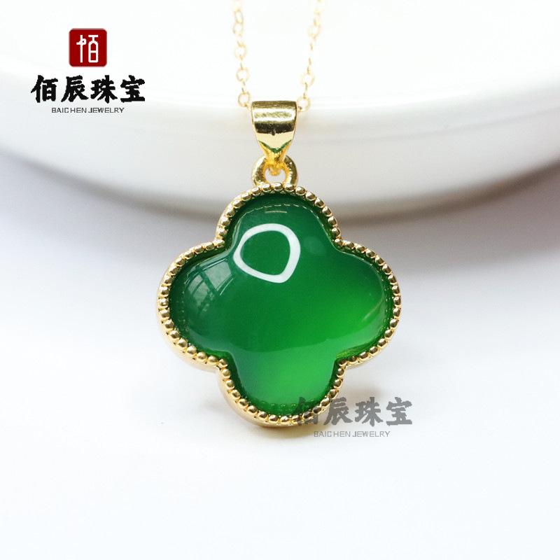 Nuevo Collar Trébol de Cuatro Hojas Calcedonia con Incrustaciones de Plata Ágata Verde Esmeralda Cadena Clavícula Oro Ágata Negra Jade Colgante