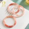 Pulsera de jade dorado con flor de durazno de Xinjiang para niña, fina tira redonda, flor de hielo, pulsera de jade dorado rosa con cascabeles