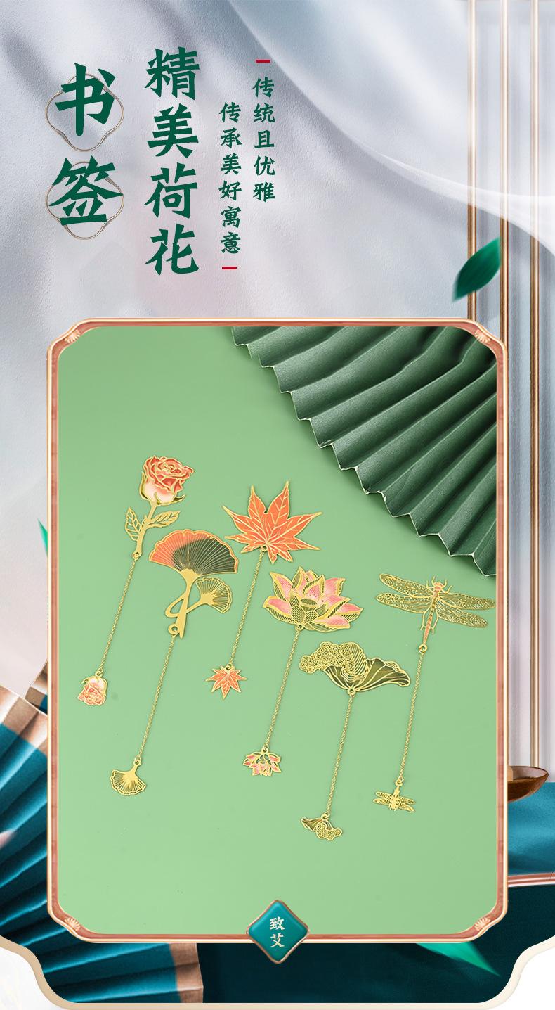 Exquisitos Separadores de Libros de Metal de Loto en Stock Venta al por Mayor Regalos de Vacaciones Graduación Estudiante Colgante de Metal Separadores de Libros Impresos