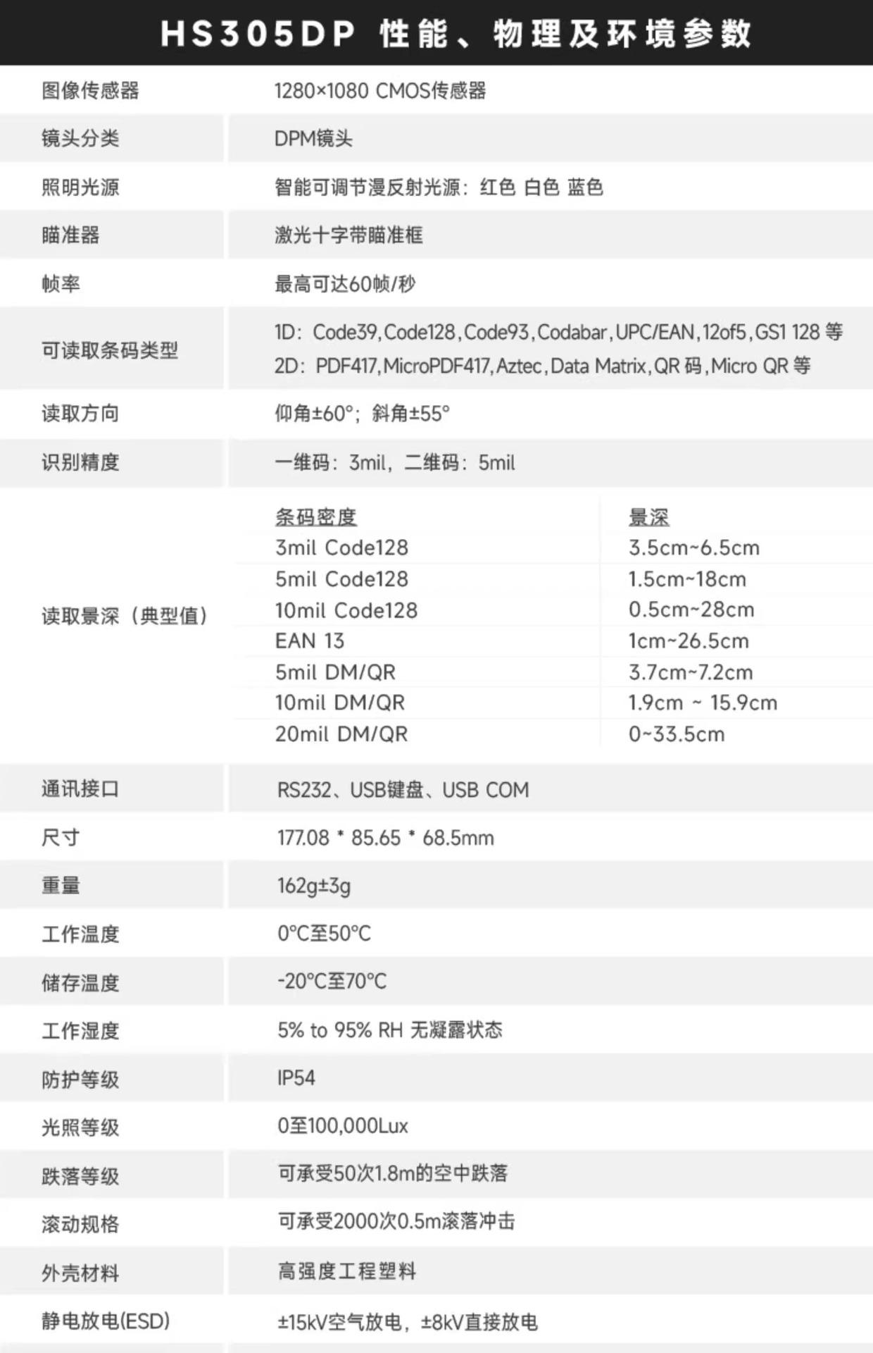 Escáner inalámbrico industrial integrado HS305/325DP de Seuic Dongda, escáner de códigos QR con cable