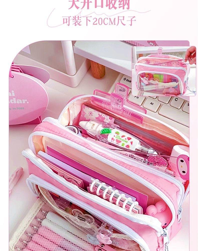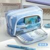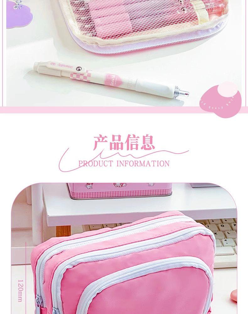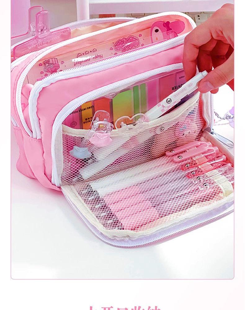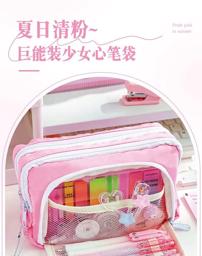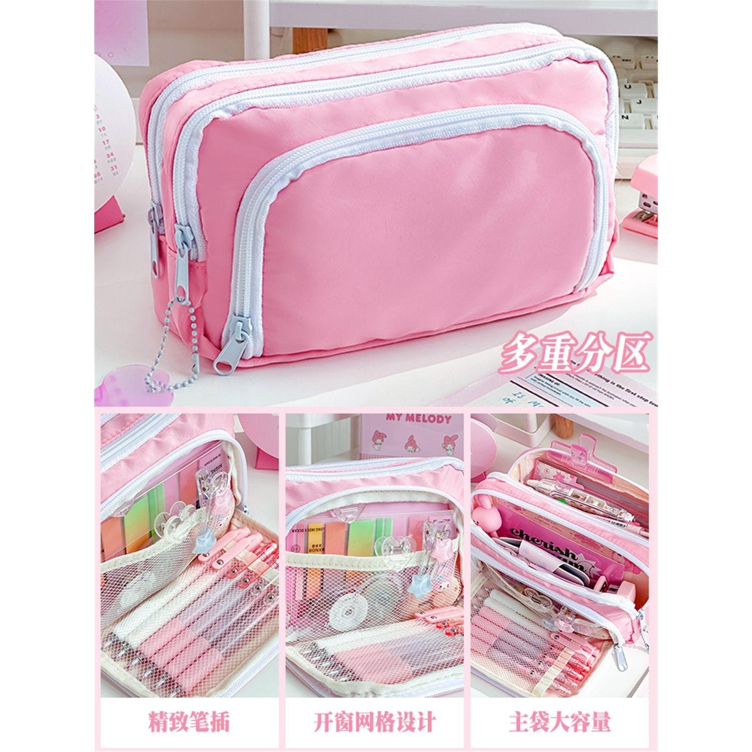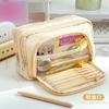 Estuche de Lápices de Ventana Frontal Nuevo Simple Multicapa para Niñas Color Sólido Ins Gran Capacidad Caja de Papelería Bolsa de Almacenamiento para Estudiantes de Primaria y Secundaria