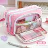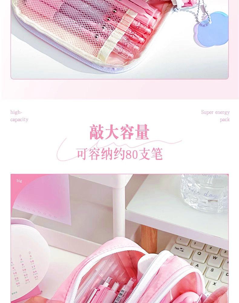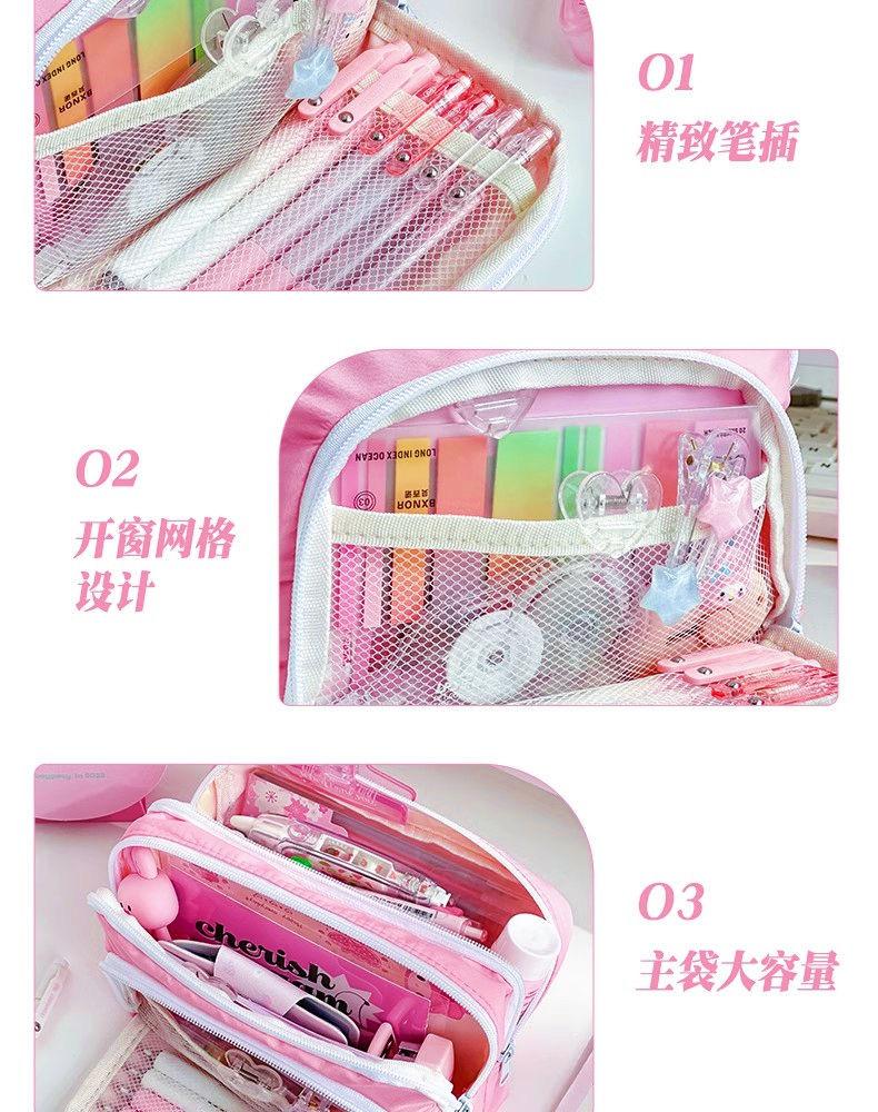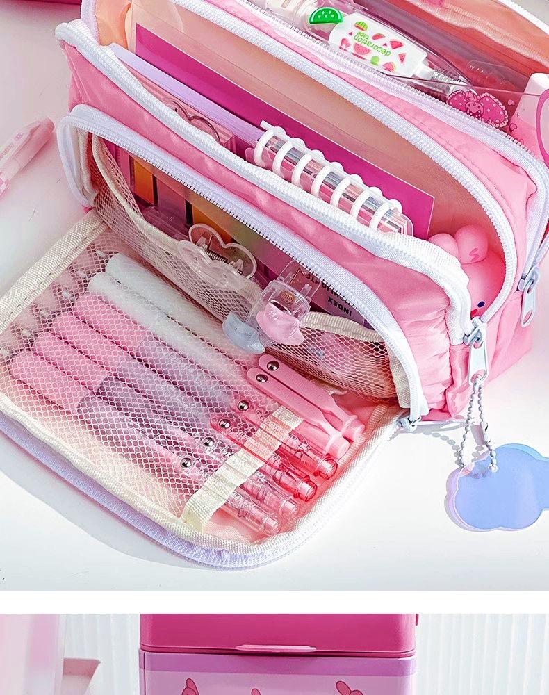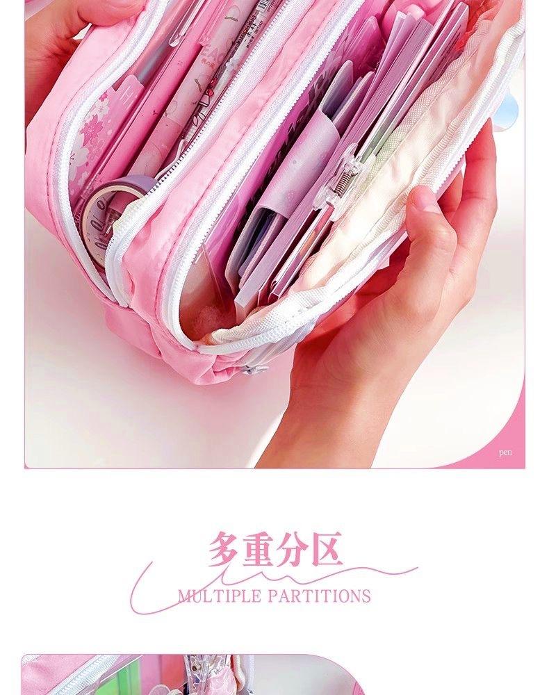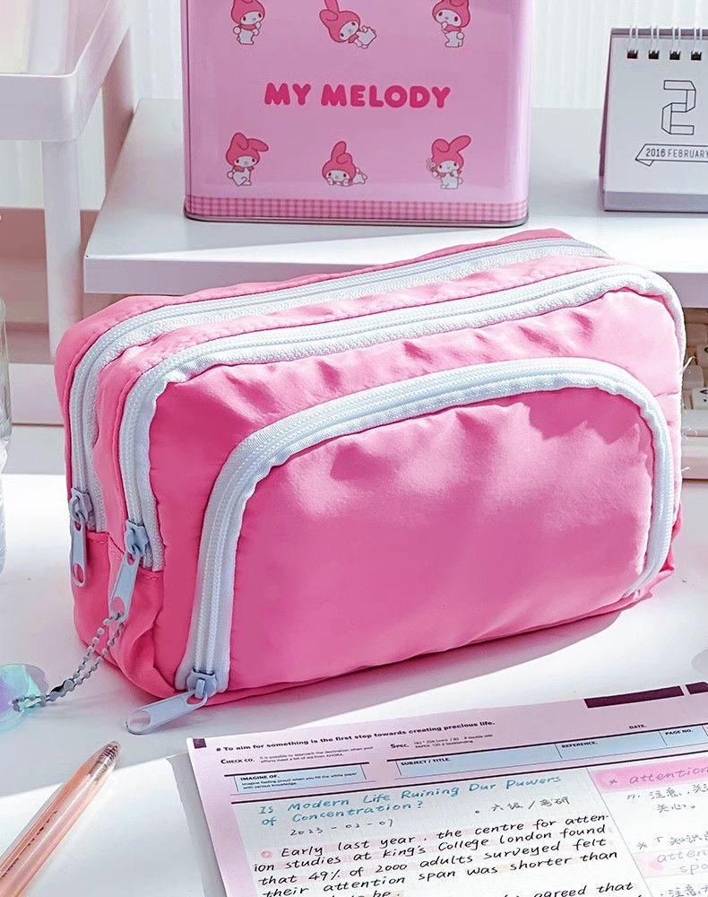 Estuche de Lápices de Ventana Frontal Nuevo Simple Multicapa para Niñas Color Sólido Ins Gran Capacidad Caja de Papelería Bolsa de Almacenamiento para Estudiantes de Primaria y Secundaria