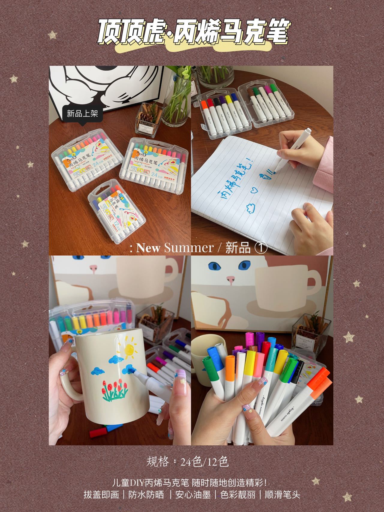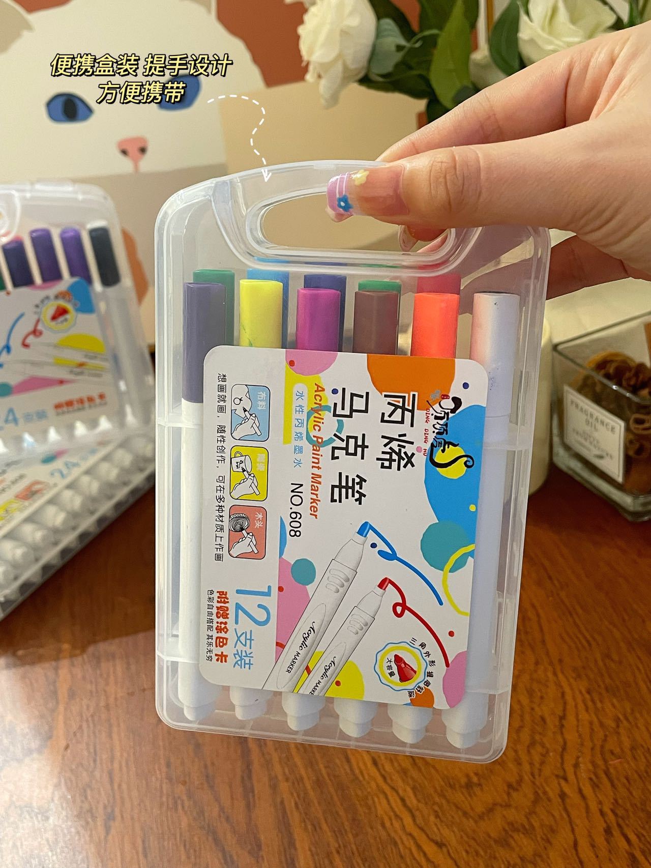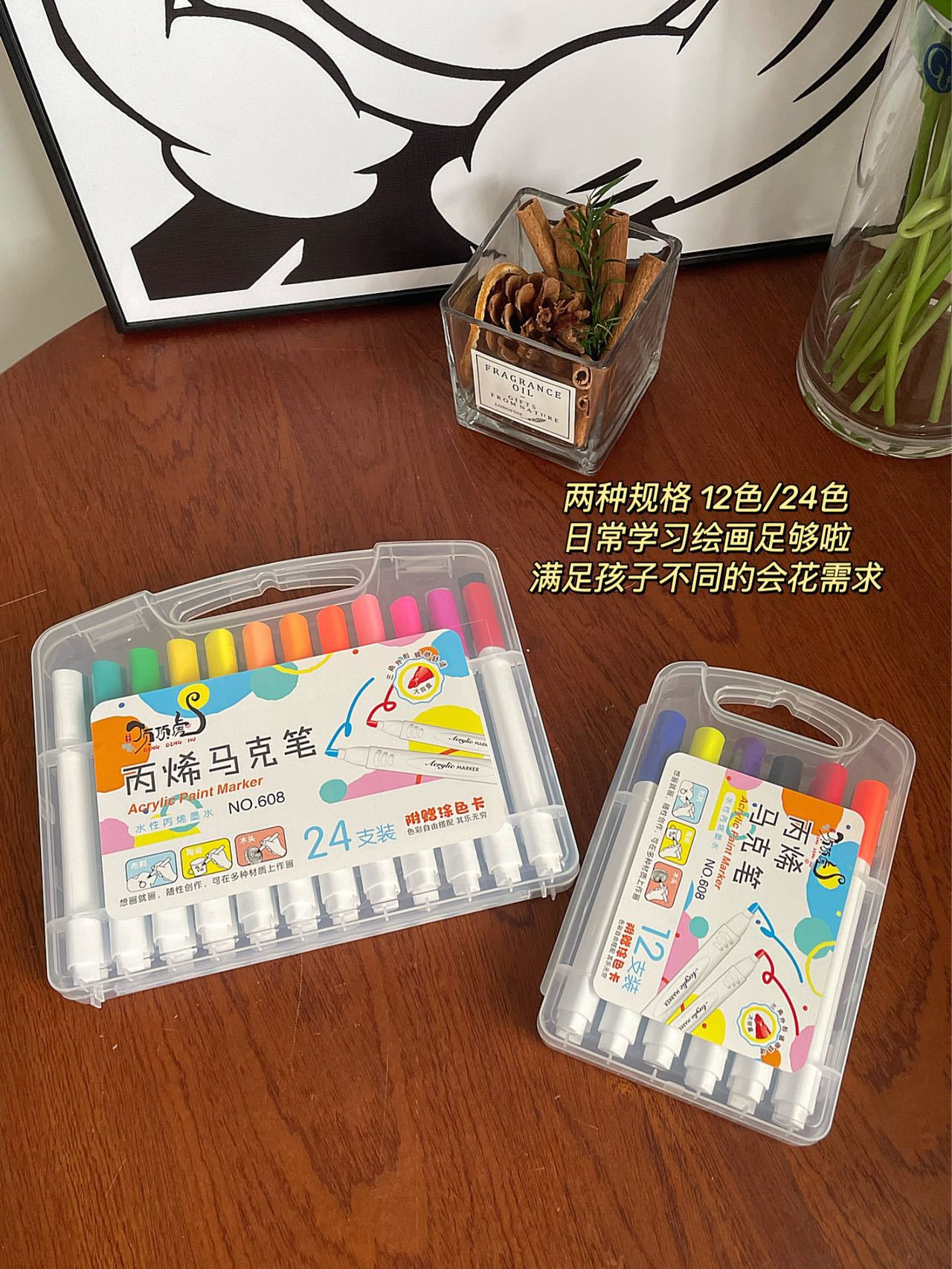 Marcadores acrílicos de 12 colores Tamaño de la caja: 52.5*44.5*41cm Cantidad de embalaje: 144 cajas